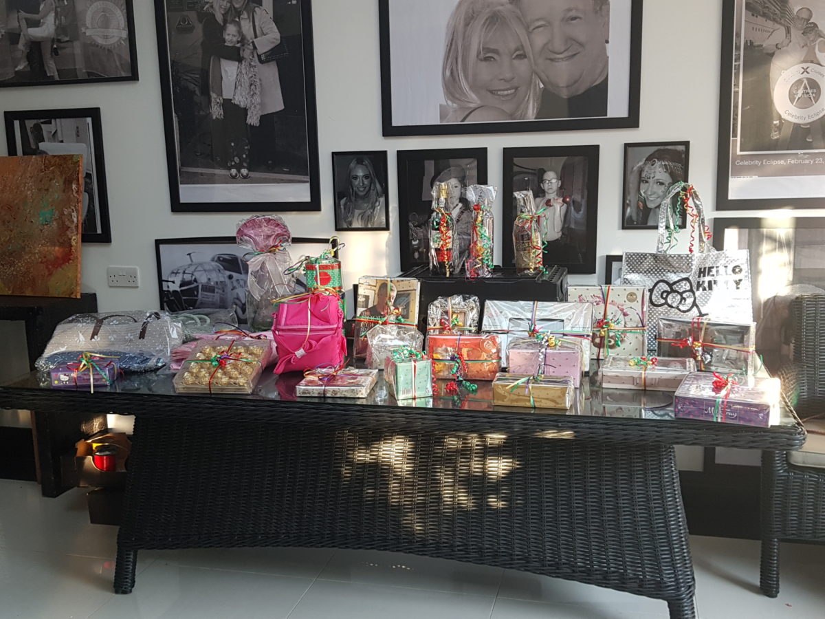 Guests were welcomed with a rum punch and other drinks were available throughout the evening. Panda Berry Caribbean Restaurant in North Finchley provided authentic Caribbean food – including jerk chicken, rice and peas, curried goat, chickpea curry plus green salad and coleslaw. For dessert there was a choice of fresh fruit and delicious home-made cakes (served by brightly dressed Cherry Lodge volunteers, see photo 8 below). The next photo shows the raffle table, laden with some very tempting prizes.