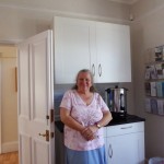 Also on the ground floor are two spacious therapy rooms, which we were able to remodel, refurbish and fit out to a high standard with money from the Caron Keating Foundation, Oil Aid and other donors, including, in 2019, a donation from Howard Cooper in memory of his wife Carolynne. Our tour of the ground floor ends with another small therapy room, a small service area with dishwasher and fridge, and two toilets (one of which is suitable for people who are disabled). Upstairs, there is another large therapy room, a quiet room, an interview room, offices for Cherry Lodge staff, another toilet and a small kitchen.
