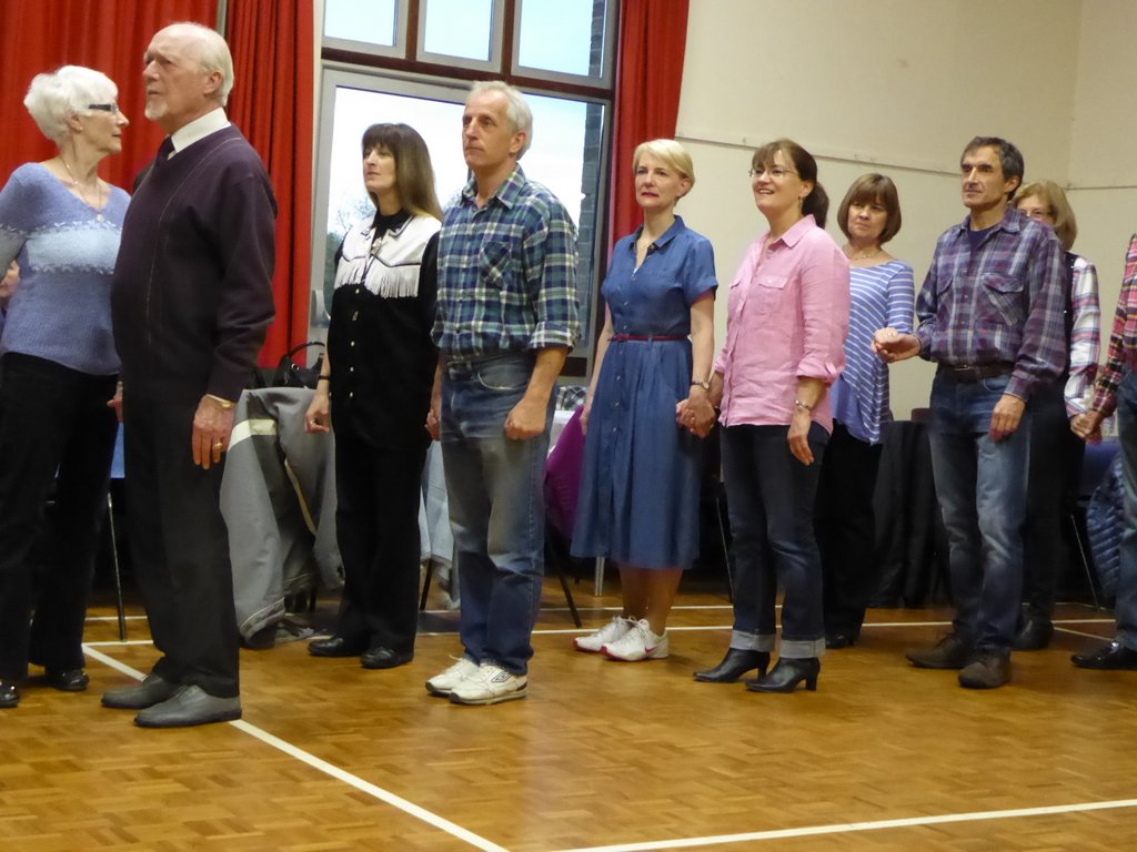 Music was provided by the excellent Ivel Valley Band, consisting of David Burden (bass), Chris Rutt (guitar) and Rachel Burden (violin). With them was Jo Rutt in the role of Caller, which, for the uninitiated is a highly skilled mixture of a sergeant major (in the nicest sense of the word) and a choreographer, keeping the entire, packed group of dancers under strict but beautiful control. The band’s repertoire is a mixture of Scottish, Irish and American numbers so most country music tastes were catered for.