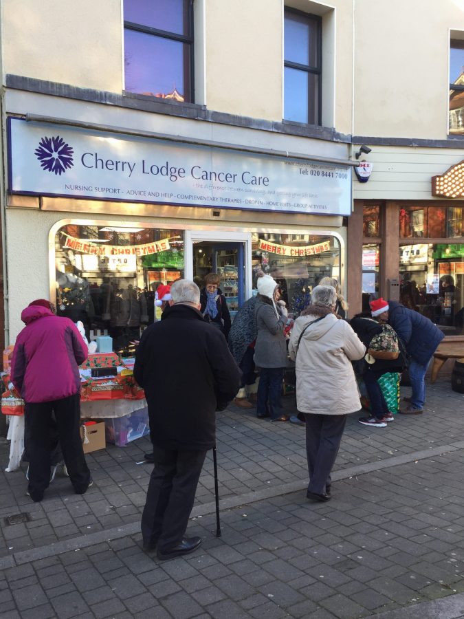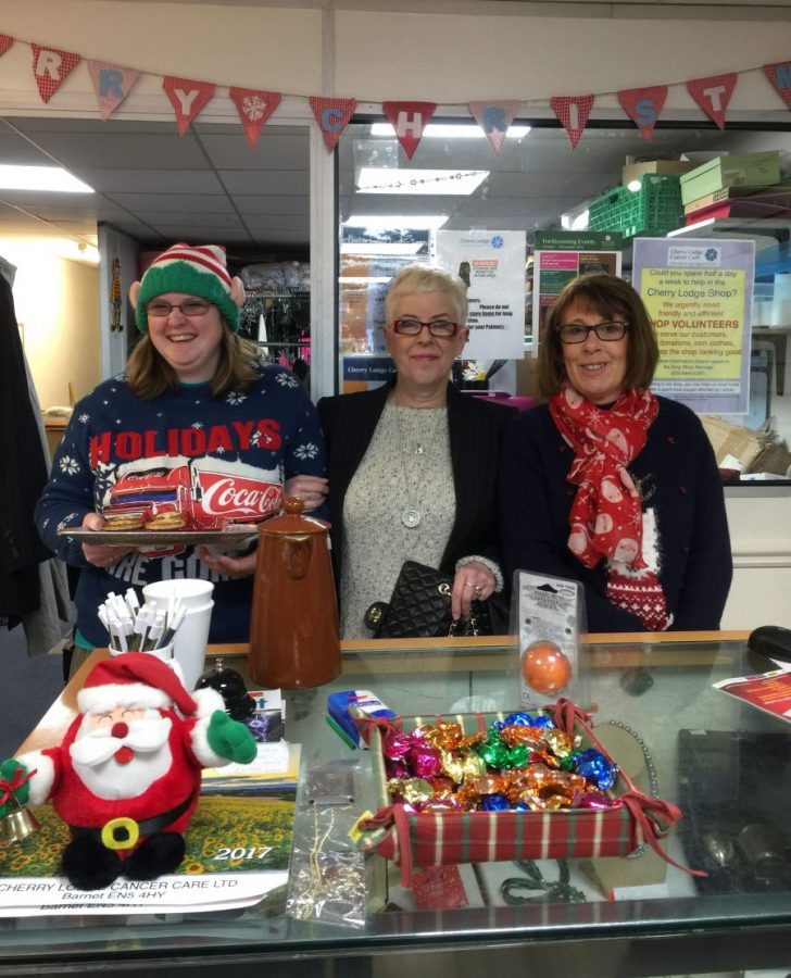 This is the one Sunday in the year when the Cherry Lodge Barnet shop is open. The managers and volunteers had pulled out all the stops and it was quite difficult to get near enough to take a photograph. A most interesting array of woolly hats was on display and people were almost fighting over the cleverly provided mirror to check their new image. Inside the very busy shop, visitors were offered mince pies and a glass of mulled wine. Many thanks to all who helped to get the shop ready and worked inside and outside on this very busy Sunday.