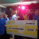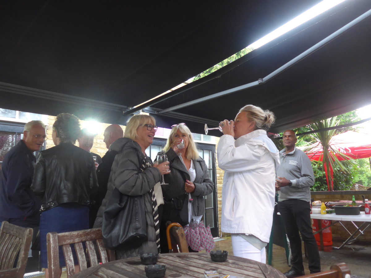 The weather for this year’s payback event was not at all cooperative and all celebrations had to take place inside the Black Horse. Quite simply, it never stopped raining all day, making it impossible to use the garden. Despite this, the atmosphere was one of happiness and enjoyment, with all present clearly delighting in the fact that such a mean and despicable crime had, somehow, resulted in a tremendous outpouring of generosity. Once again, Cherry Lodge have received a wonderful and much needed amount of money from Summer Soulstice, enabling them to do what they do best, namely looking after people, no matter where they are on their cancer journey.