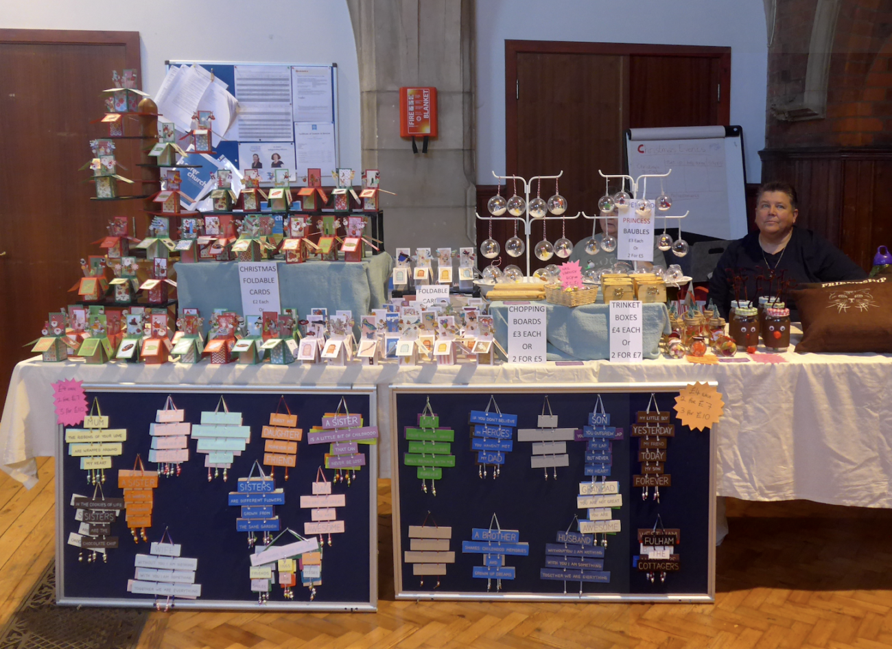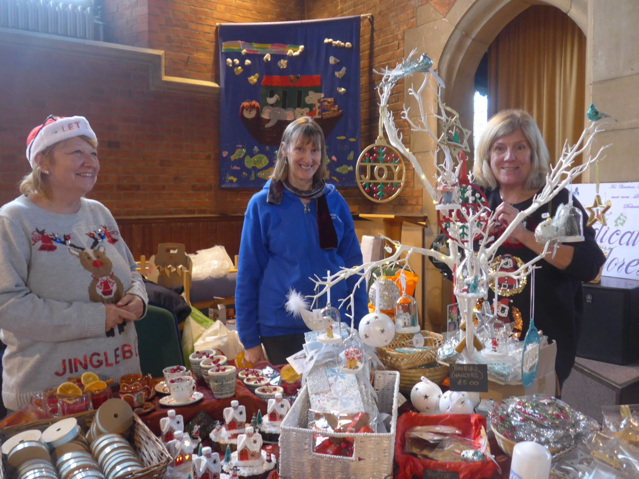 As can be seen in our photographs, there is clearly a lot of talent in the borough and the sheer variety of cards, wooden tree decorations, baubles and floral creations was most impressive. An assortment of jewellery, made by some very creative people, and some original artworks also gave plenty of opportunity for spending. The Cherry Lodge merchandise stall offered a range of goods, including wonderfully warm hats so there is no excuse for anybody’s head to be uncovered, whatever the winter may bring.