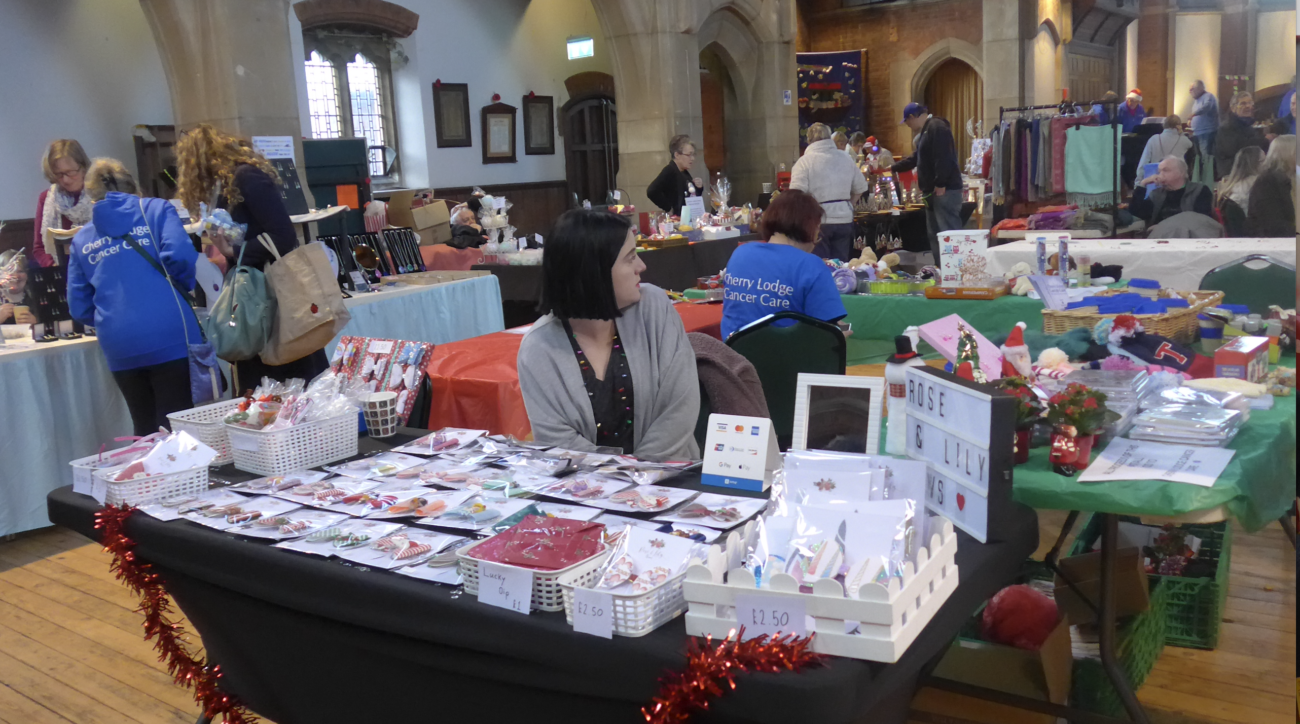 The banner over the door of St James church, New Barnet (click on the photo, above, to enlarge it) left people in no doubt that 30th November 2019 was the chosen date for Cherry Lodge Cancer Care’s very popular annual Christmas Market.