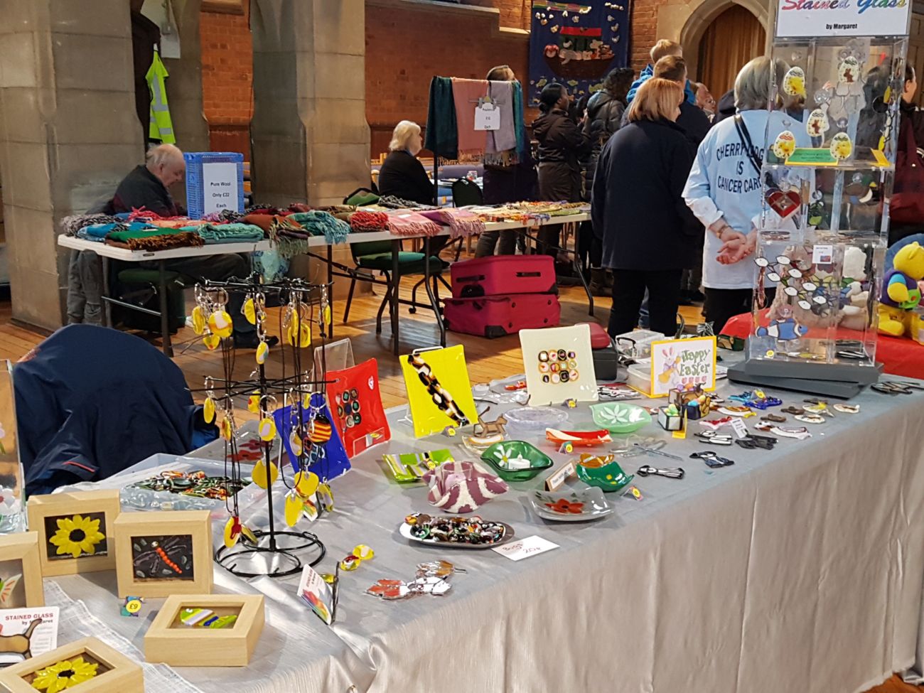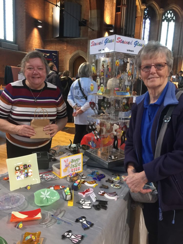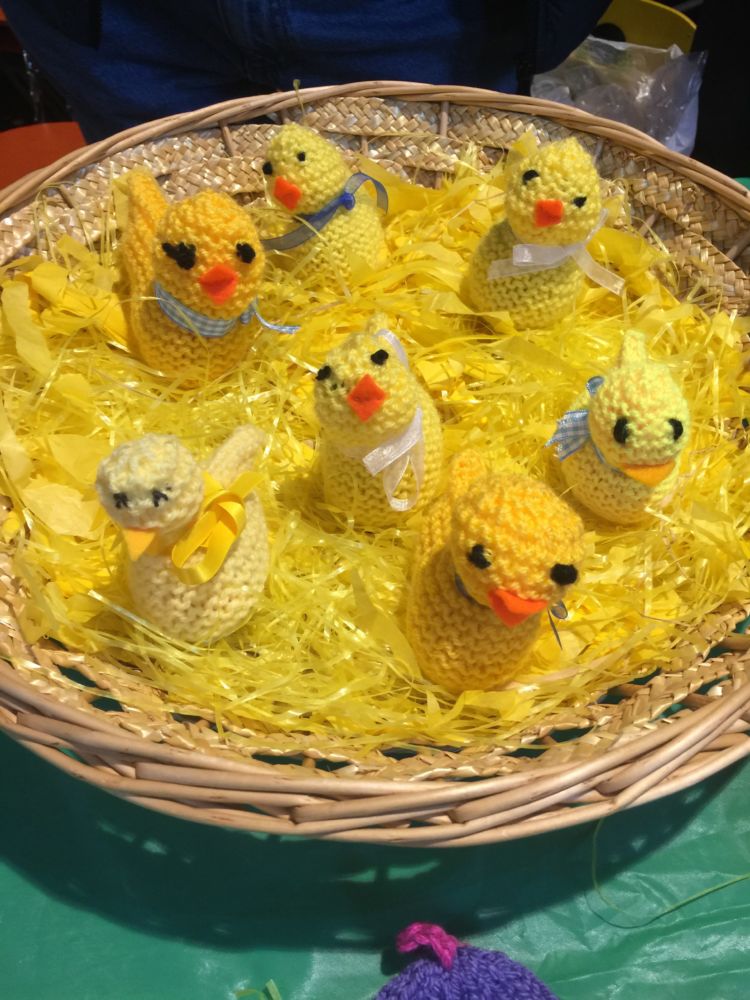 Tina, our event coordinator, had attracted some very exciting new stalls to the venue and this meant that the choice of gifts and other goods on sale was very extensive. Attractive items included exquisite glass ornaments, hand-made cards, and truly delightful small toys all in their own bags (photo 4, below). Also very popular were our knitting group’s contribution of chickens and ducklings, each containing its own chocolate egg,
