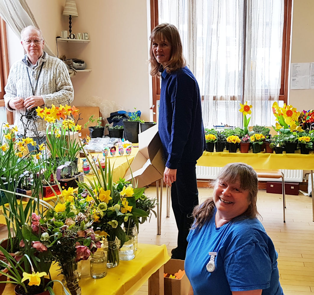 The weather wasn’t quite warm enough to have the lovely plant stall outside this year but it was easy to find in its own room by the entrance. On entering the Fair, numerous visitors bought raffle tickets for the beautiful Easter Egg (photo 1, below), donated by Rose W and made by The Chocolate Shop, Cockfosters. It was nice that it was won by Julie, a member of Cherry Lodge, but unfortunately she was not there at the draw to pose with her win.