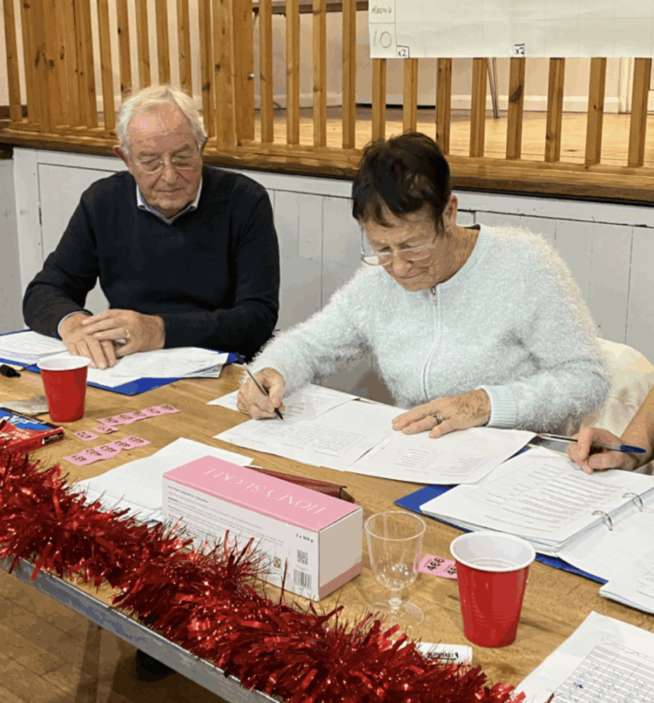 We were fortunate once again to benefit from the impressive quiz setting and organisational skills of the Southon family: David the Quiz Master, ably assisted by his wife Maureen and daughter Dawn. Very many thanks to the three of you for running such an excellent show. We were treated to 10 interesting rounds, covering a good range of topics, several with a Christmas theme. Different team members had a chance to shine tackling questions on Nature, Children’s TV (giving parents and grandparents a considerable advantage), Christmas knowledge (two rounds), Money, Mathematics, Sport, Desserts (including figgy pudding), and two general knowledge rounds, entitled ‘Ups and Downs’ and ‘Pot Luck’. There were also table rounds, with photos of celebrities and cartoon animals to be identified during the course of the evening.