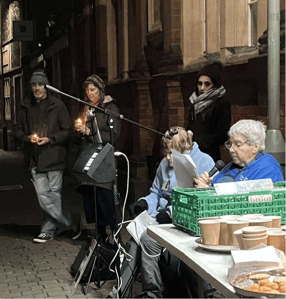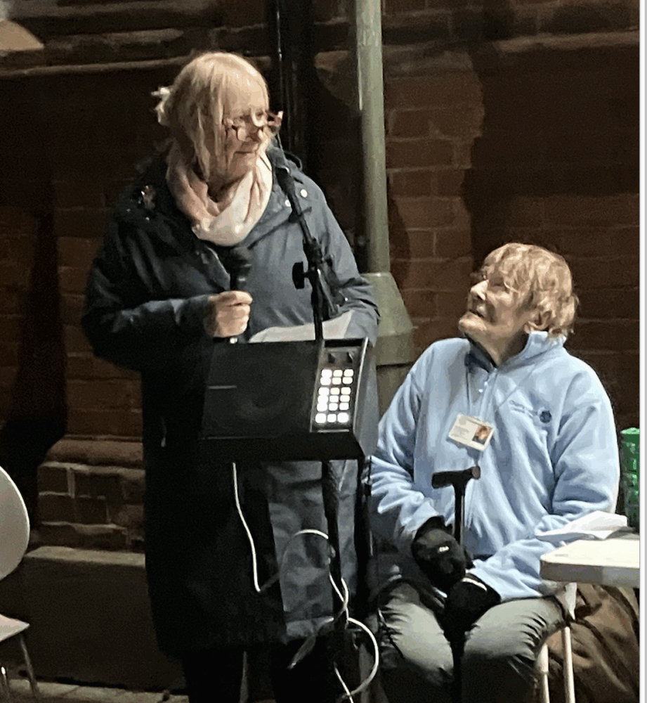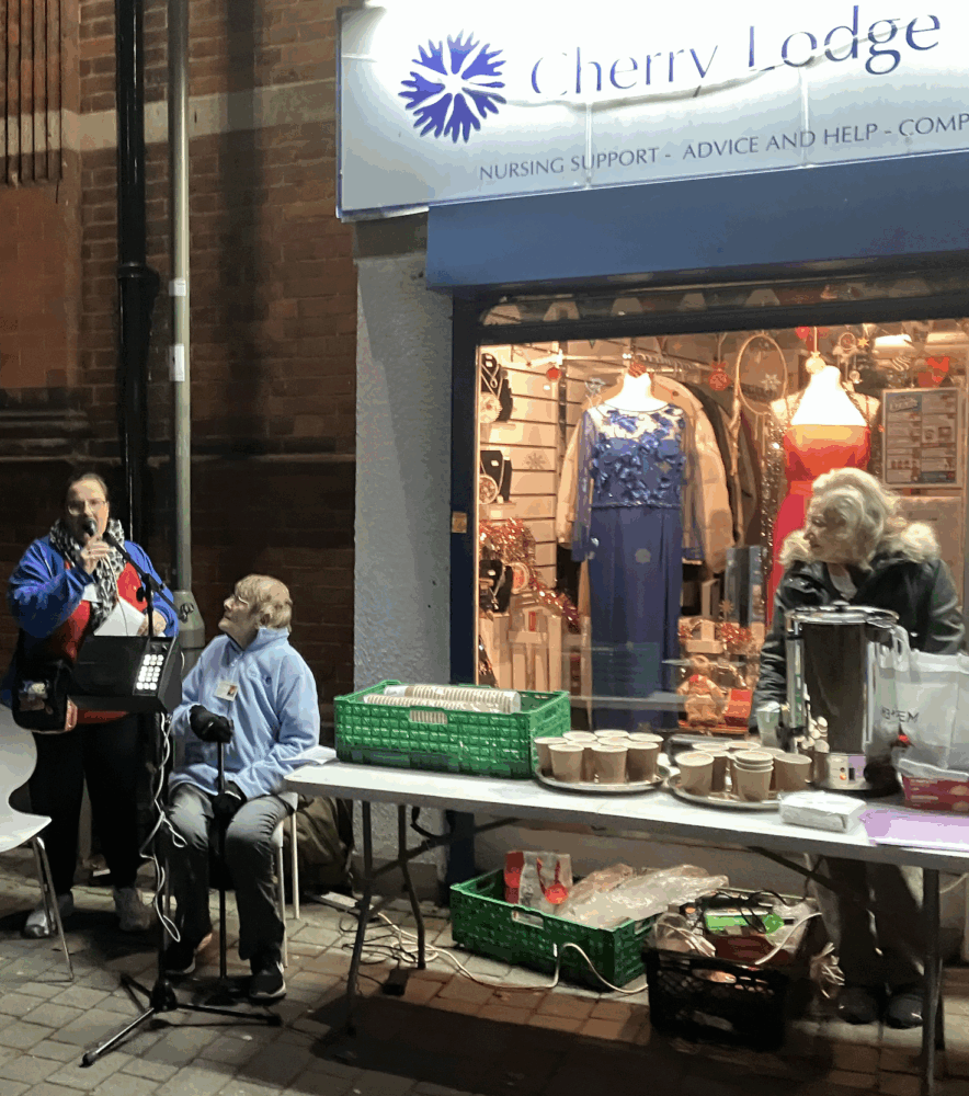 Thank you to everyone who helped make this event such a memorable sucess, either by reading a poem or singing on the night, or by donating to Cherry Lodge funds to sponsor a light. Special thanks are due to Freddy for reading out the very long list of names, to Paul for providing the PA system, to shop manager Kim for keeping the shop open for us, and to volunteers Bobbi and Sandra for serving the refreshments.