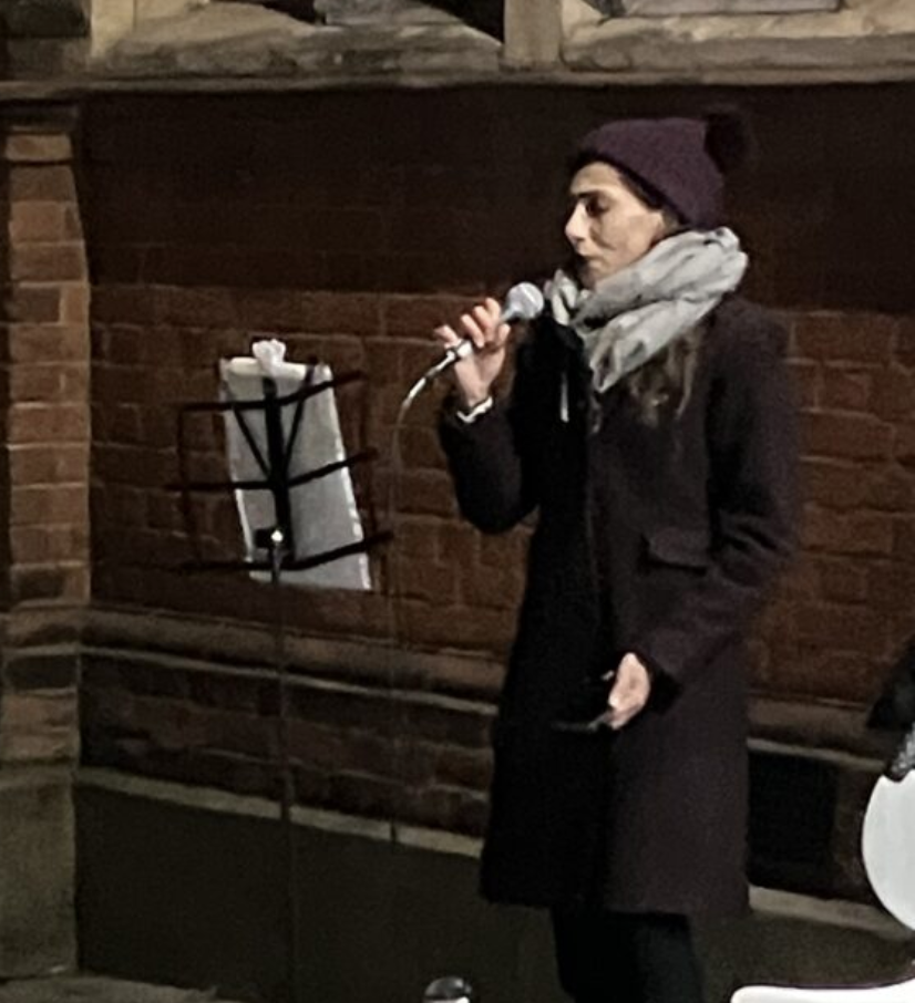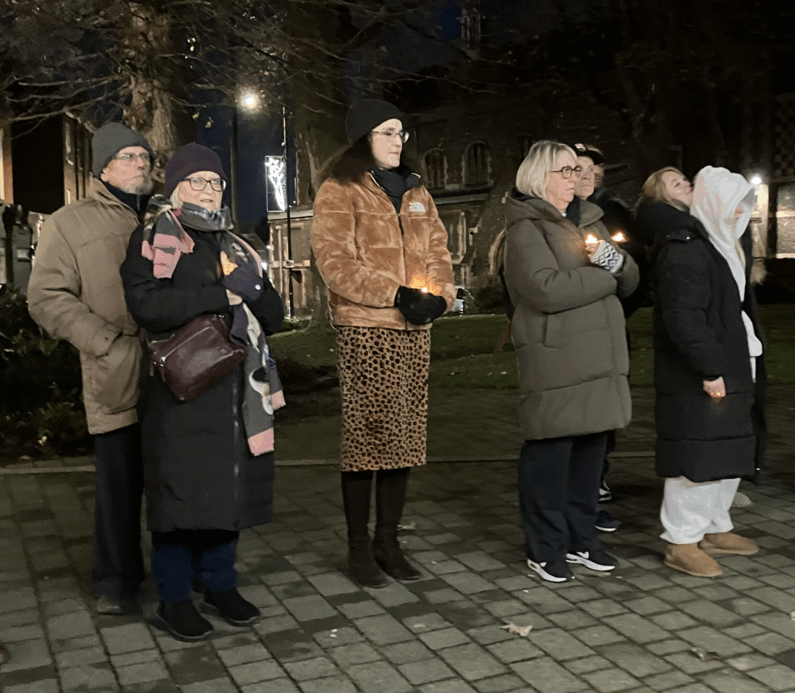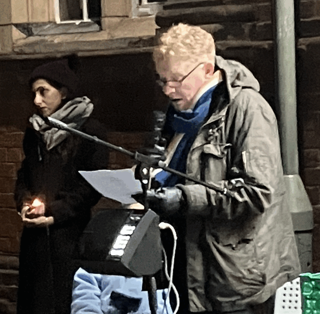 Music for the evening was provided by singer Aish (known to her followers as Aish on the Radio). Her first song was the very lovely and appropriate “Somewhere over the Rainbow”. This took us to the very heart of the ceremony – the reading out of names of people to be remembered. These included not only people who have died, but also others who might appreciate a token of love to help them through difficult times. As always, Freddy led this remembrance very clearly and touchingly. While she read, attendees joined in by following the prior instruction to switch on their tea-light on hearing the name of a loved one.