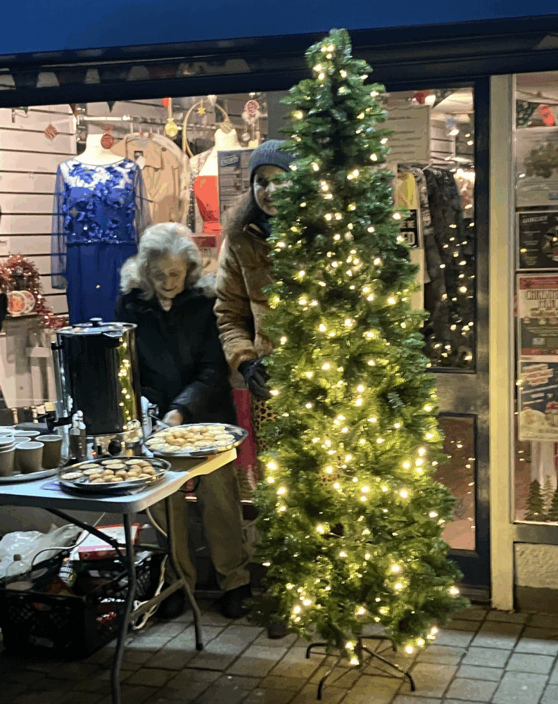 The ceremony was brought to its close by singer Aish, leading the gathered crowd in a spirited rendition of the Cherry Lodge anthem: “You’ll Never Walk Alone”. Finally, mulled wine, mince pies and small cakes were served outside the shop.