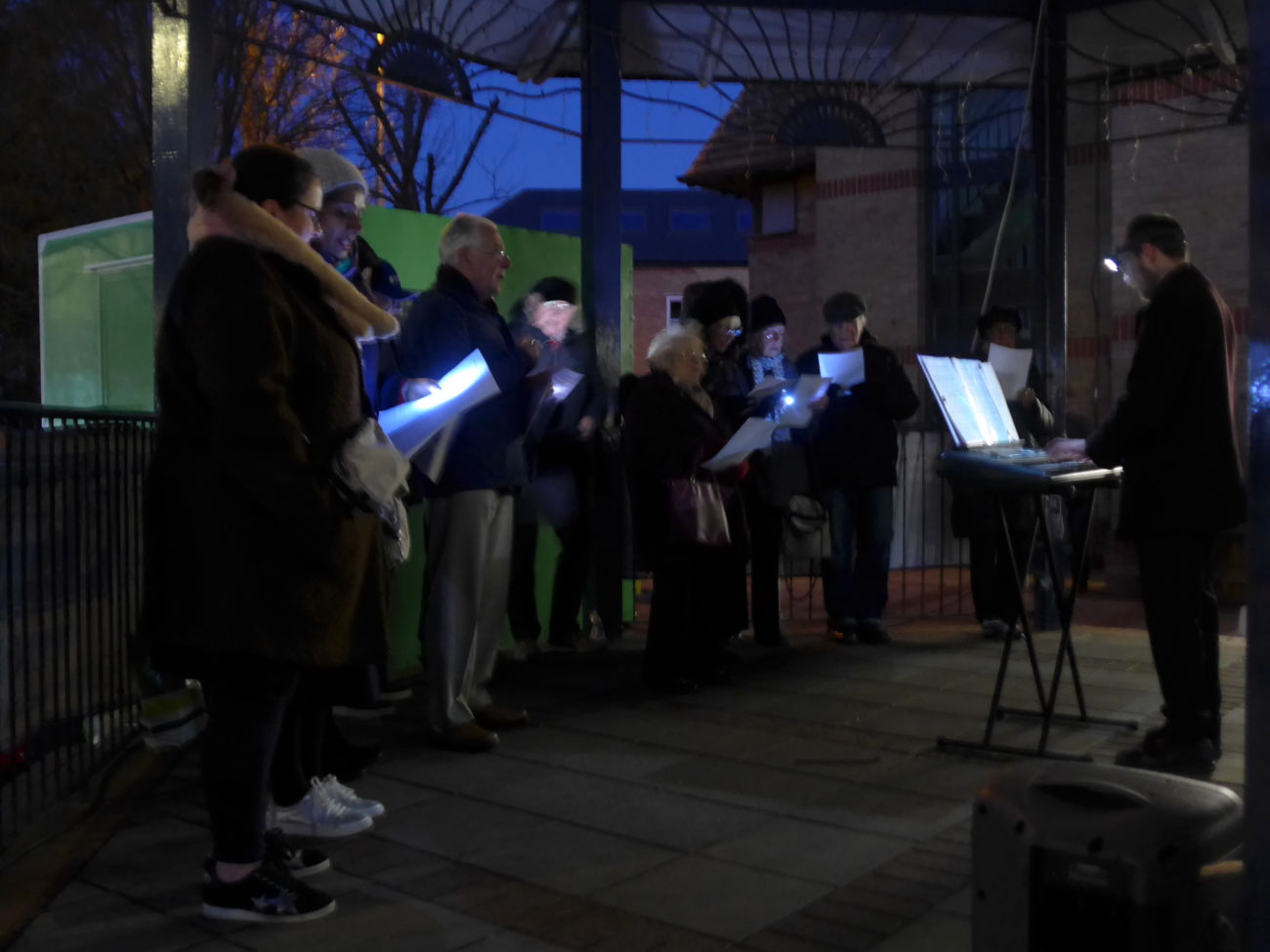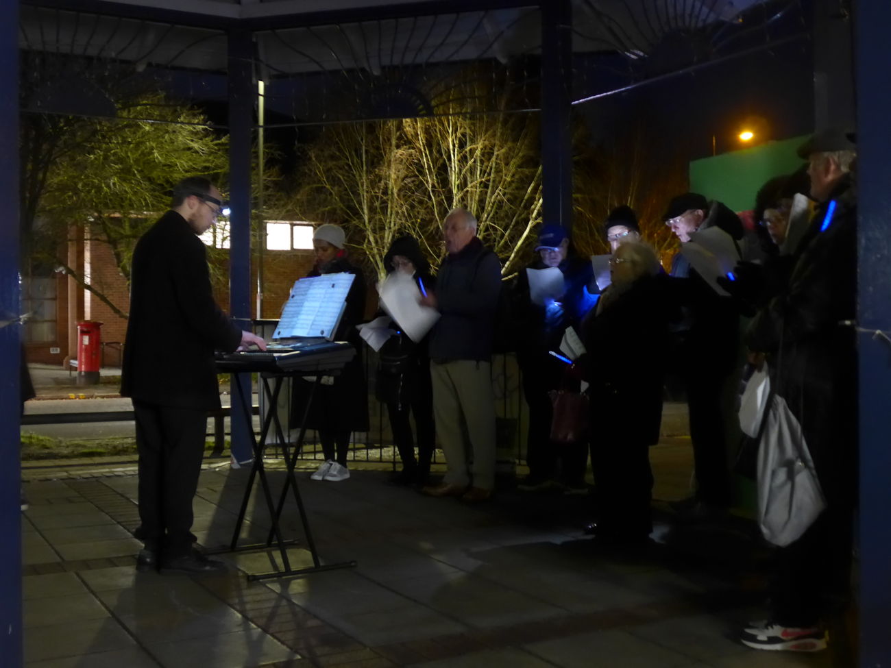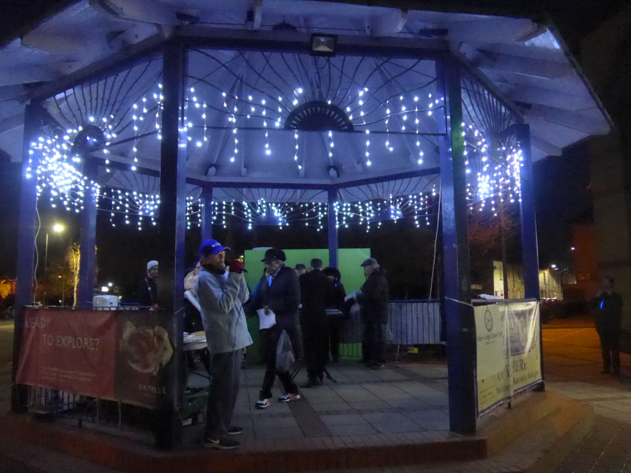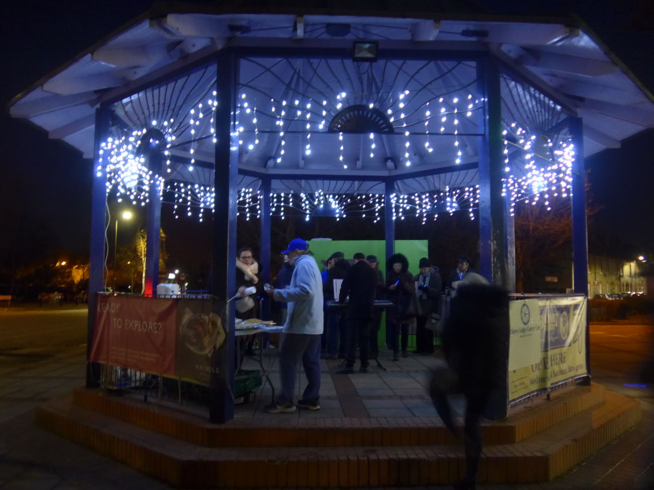 People then gathered in and around the beautifully lit bandstand to chat and enjoy mince pies and the very welcome, warming mulled wine.
