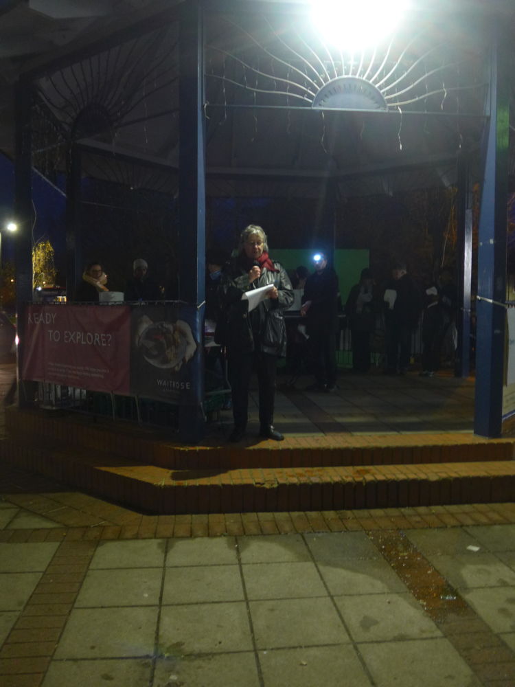 On arrival, the organising team were met with a serious problem – there was no lighting available on the bandstand! Fortunately, an emergency electricity supply was quickly installed and the proceedings were able to start in semi darkness at 4.30pm as planned. The ceremony was was led by Margaret Clark, chairman of the Cherry Lodge trustees, who began by welcoming everyone and outlining the order of events.