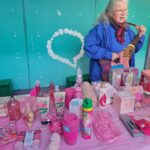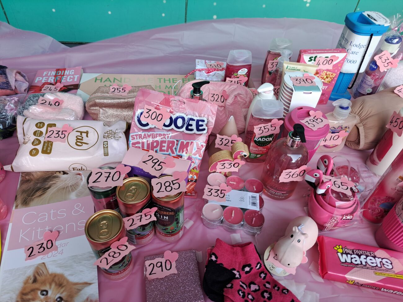 Thanks to the generosity, imagination and sense of fun of the many individuals who donated items, the long table looked like a sea of pink when the event was declared open at 11am. Instead of drawing a ticket from a bucket, participants were asked to pull a small stick from the numerous holes in a large polystyrene board. Winning sticks carried numbers ending in a 0 or a 5 to be matched with prizes on the table. (Thank you again to Kim and Annys for coming up with this very clever invention in 2020 in response to the challenge of putting on our event when Covid was prevalent.)