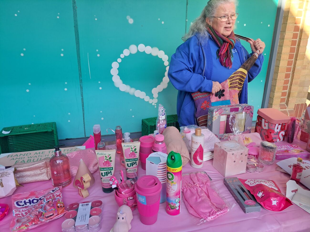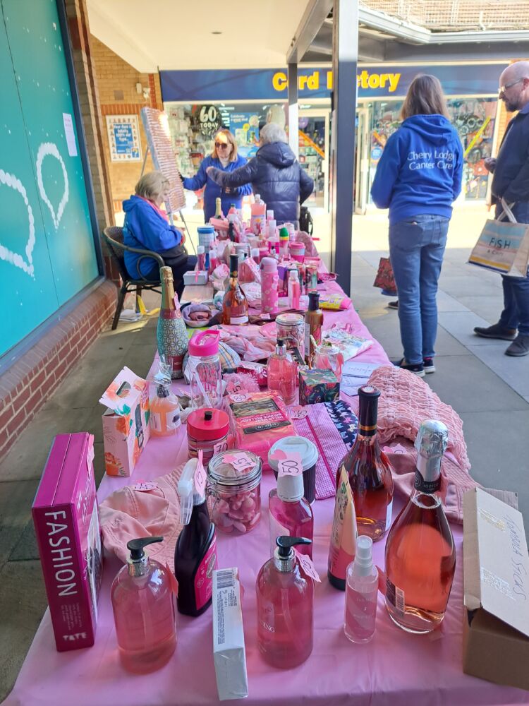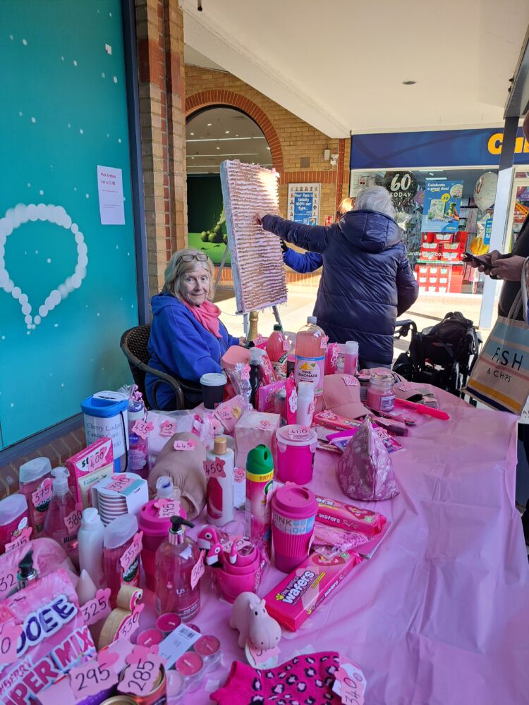 Every year, in “Pink October”, Cherry Lodge Cancer Care marks Breast Cancer Awareness month by setting up a very enticing Pink Tombola stall in The Spires, Barnet. Our 2023 event, which took place on Saturday 14th October, was as popular as ever, providing lots of fun for people of all ages. On a more serious note, this annual event is recognised as a very effective way of increasing public awareness of breast cancer, reminding people that Cherry Lodge is close at hand, and raising money to ensure that Cherry Lodge can continue to provide its much needed information and support services completely free of charge to people affected by any type of cancer. The total raised was an excellent £424, including a donation of £100 from the Coffee Club, Barnet.