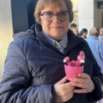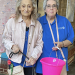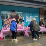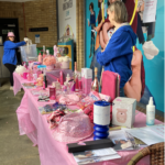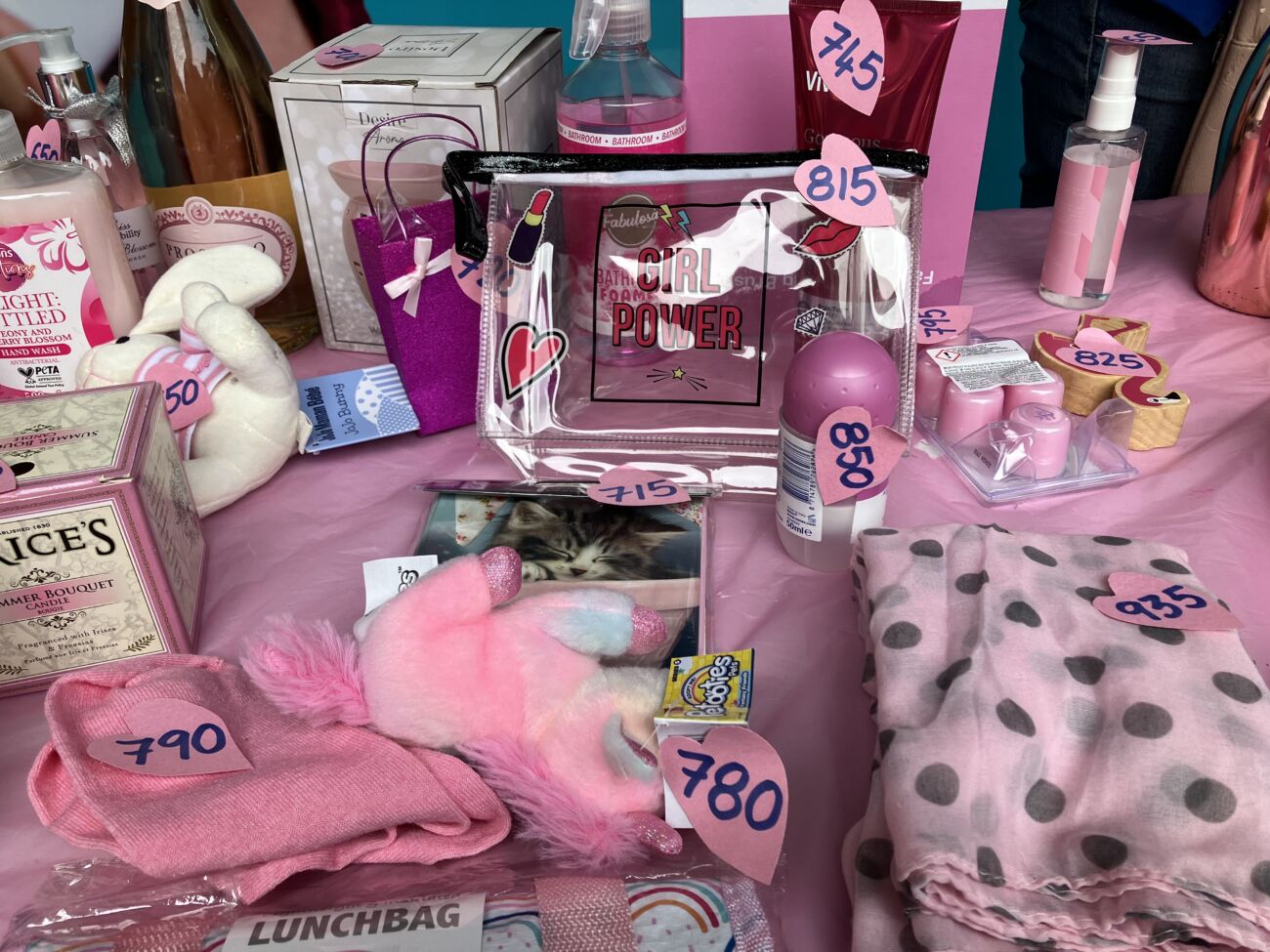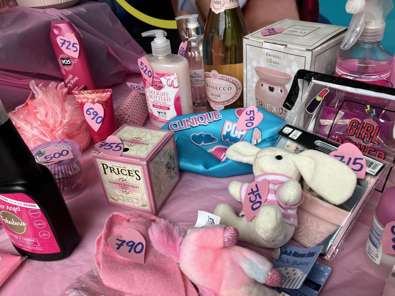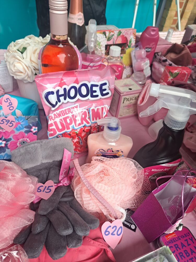 At the start of the day, with the rain relentlessly chucking it down, the two tables were groaning under the weight of nearly 300 generously donated pink prizes. Miraculously, the weather changed completely and our pink display attracted constant interest until well into the afternoon. People gathered eagerly to buy three sticks for a pound in the hope of winning, or sometimes simply chose to make a generous donation to our funds. Our stall also gave people an opportunity to learn about Cherry Lodge and just what we are there for.
