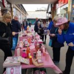 The fresh and invigorating weather attracted a large number of people to the tombola stall outside WH Smith. When the fun began at 11am there were some 180 pink items to play for – more than ever before! Our photos were all taken early in the day when the stall looked absolutely fabulous and before Tina and the first team of volunteers became too busy to think of anything other than running the tombola. Other teams of volunteers took over during the day and were almost run off their feet coping with the crowds and keeping things going until around 3pm.