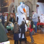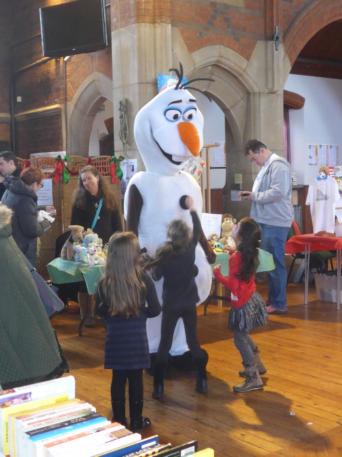 Father Christmas arrived, accompanied by an elf from Totteridge Academy, and so did a beautiful reindeer, delighting the numerous children at the Fair, many of whom wore evidence of Debbie’s excellent face painting skills. Olaf, the snowman from Frozen, surprised people in the street outside the hall but eventually even he had to come inside as the temperature dropped significantly under the very bright sky.