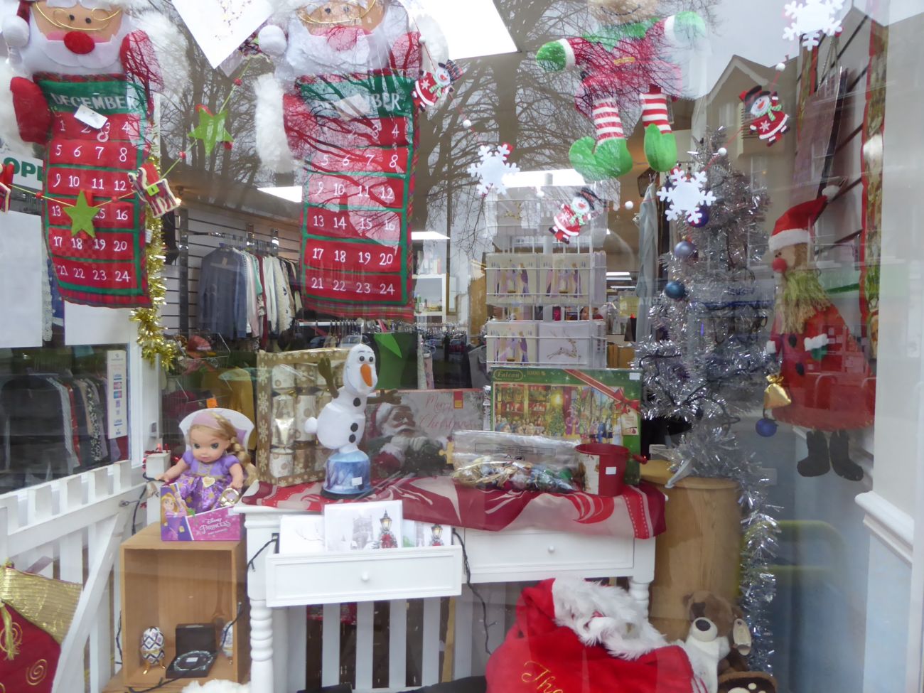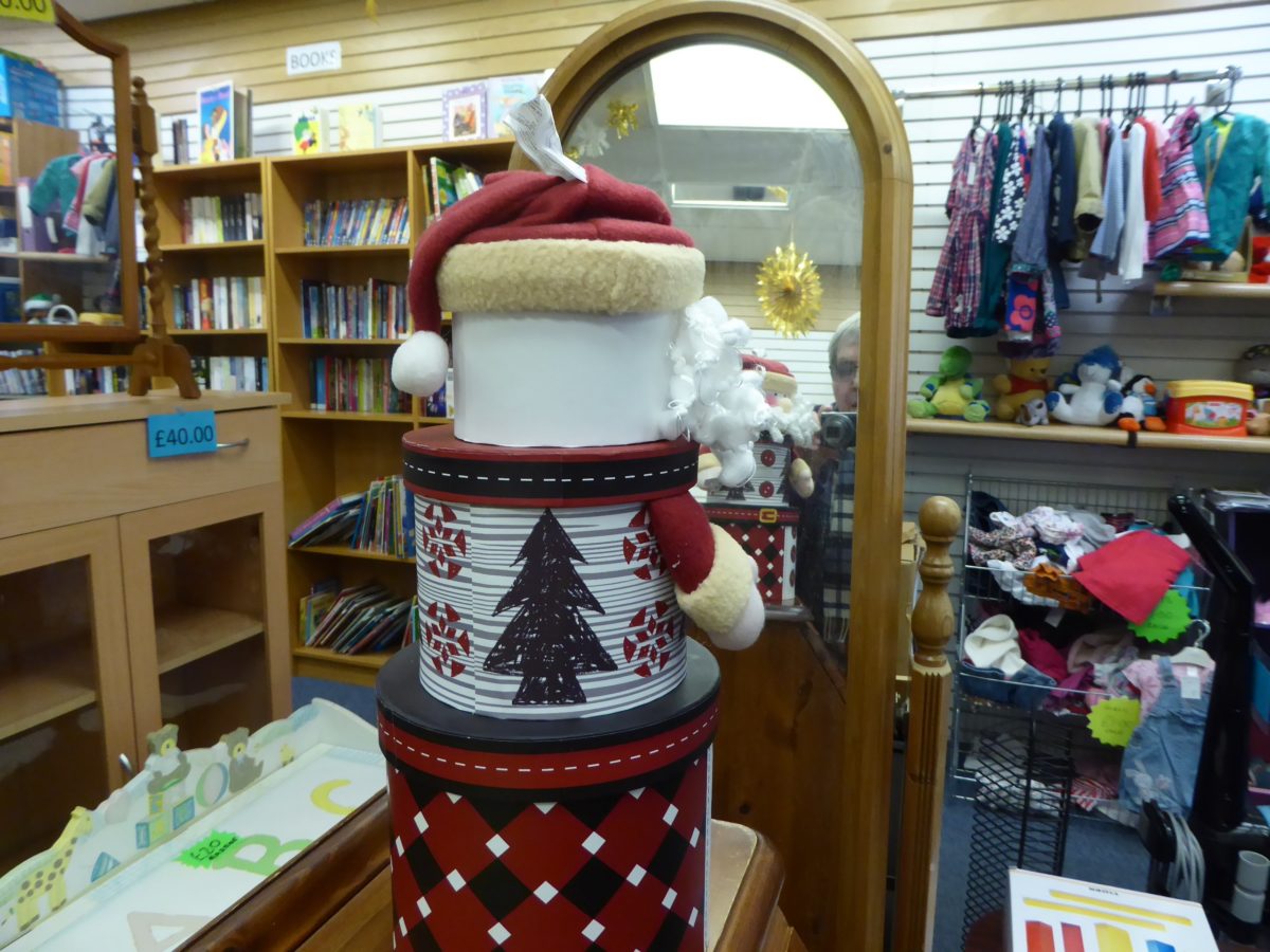 As usual, both shop teams have pulled out all the stops to make our Christmas windows look as attractive as possible so as to stand out among the many other charity shops all competing with each other. The Barnet shop has made the most of its small windows with a very attractive and colourful display (see featured photo, right), showing off the newly arrived fabric advent calendars (very popular this year) as well as toys, colouring books, artificial trees in various sizes, and Cherry Lodge Christmas cards. On 2nd December 2017, our assistant shop manager, Annys, and several volunteers gave up their Sunday to open the Barnet shop during the annual Barnet pre-Christmas Street Fair. A seasonal tombola and free mince pies added to the pleasure of the shop’s many customers.