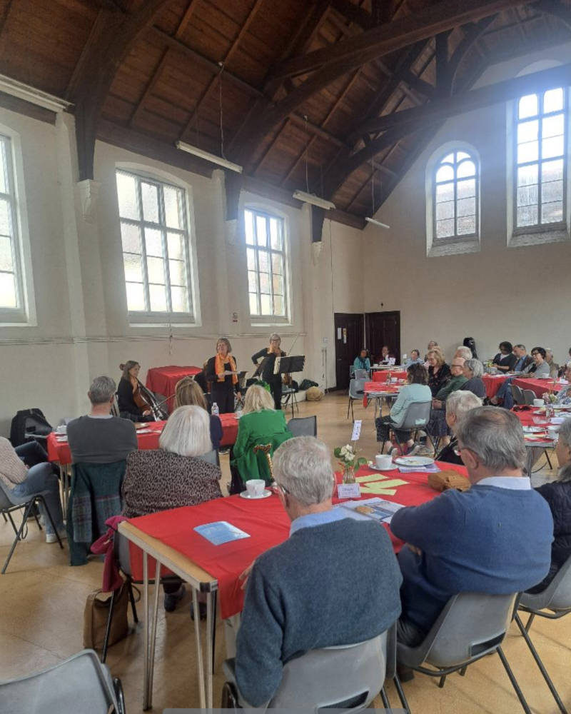 On a sunny Sunday in May 2025, local musicians Serafini brought their ‘pop up’ 18th century style Coffee House to St Marys Church Hall, Potters Bar. Over fifty people were entertained to a whole afternoon of delightful live music, raising the magnificent sum of £1,125 for Cherry Lodge Cancer Care.