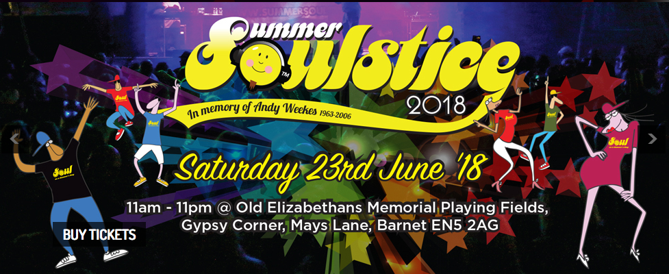 This fantastic annual Soul festival, raising funds for Cherry Lodge Cancer Care, will take place on Saturday 23rd June 2018 at Old Elizabethans Memorial Playing Fields, Barnet.