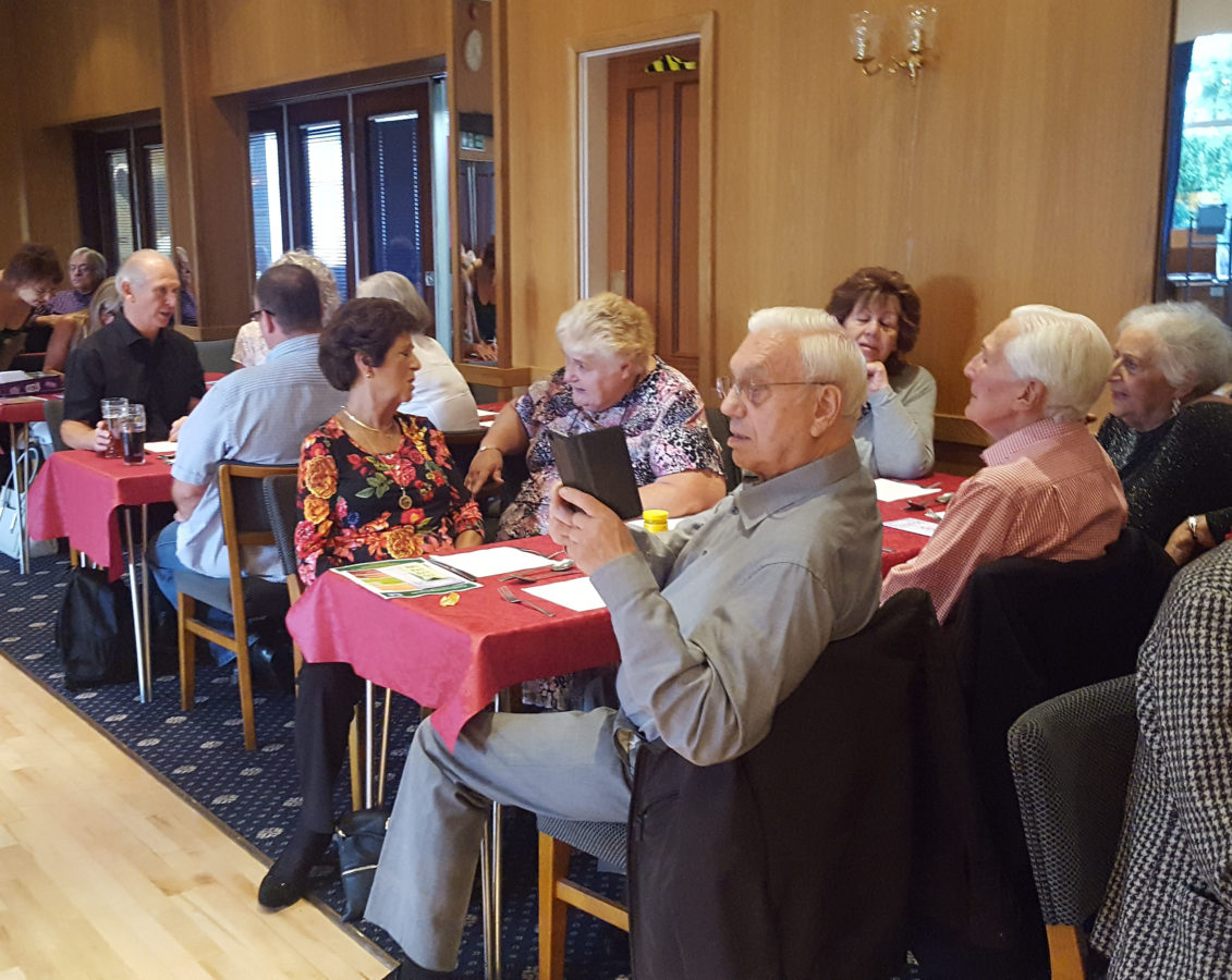 Supporters of Cherry Lodge Cancer Care helped raise funds for our charity on Sunday 17th September 2017 by taking up the invitation to ‘Eat, Sing and be Merry’ at North Enfield Conservative Club. Thank you very much indeed to Meriel for organising the event, which raised a very welcome £500, and also to the King of Herts Chorus who kindly donated their £100 fee. Our report, below, was supplied by Meriel:
