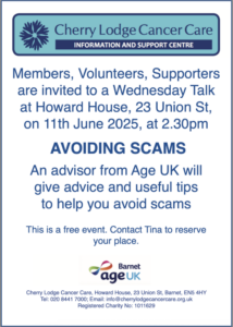 To book your place please email Tina or call her on 020 8441 7000.
