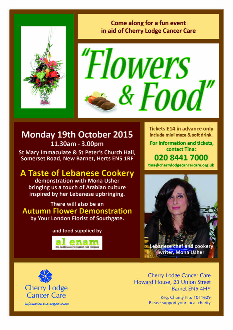 Mona Usher, a highly regarded chef and cookery writer who grew up in Beirut, will bring a touch of Arabian culture to her Taste of Lebanese Cookery demonstration. Also included in the programme is an Autumn flower arranging demonstration by Your London Florist of Southgate.