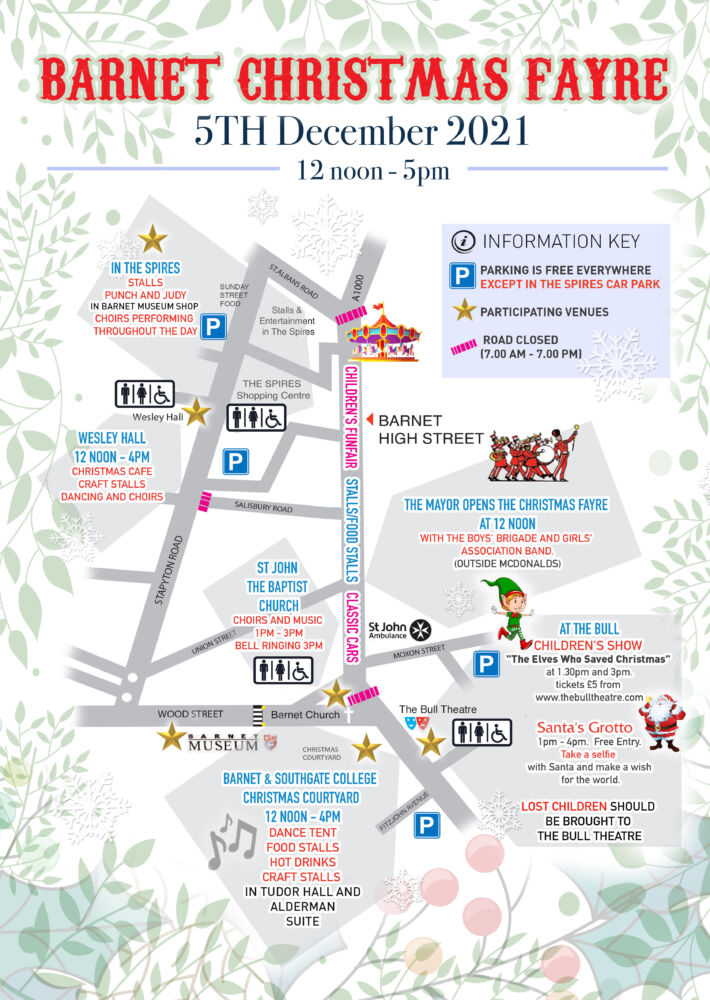 The annual Barnet Christmas Fayre, organised by the Mayor’s Appeal committee, will take place on Sunday 5th December 2021 between 12 noon and 5pm. The main streets will be closed to traffic and hundreds of people are expected to turn out to enjoy the fun.