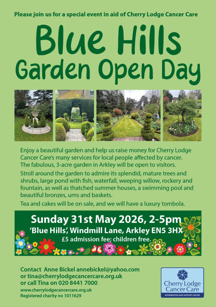 Please join us at the Blue Hills Garden Open Day and help raise money for Cherry Lodge Cancer Care. This fabulous 3-acre garden will be open to visitors on Sunday 31st May 2026 from 2pm to 5pm.