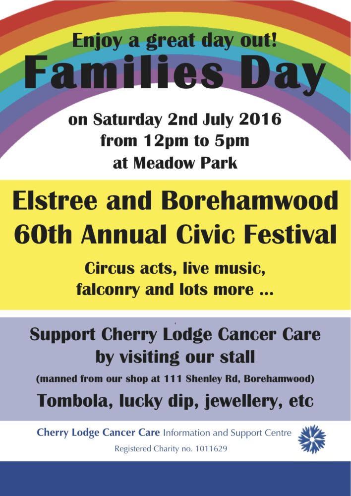 Please come along to the Cherry Lodge Cancer Care stall, manned by staff and volunteers from our Borehamwood shop. Help us to raise money for our important work while having some fun at the tombola and lucky dip. You will also find a good selection of merchandise on sale, including jewellery, bric a brac – and sunglasses (fingers crossed for a sunny afternoon!).