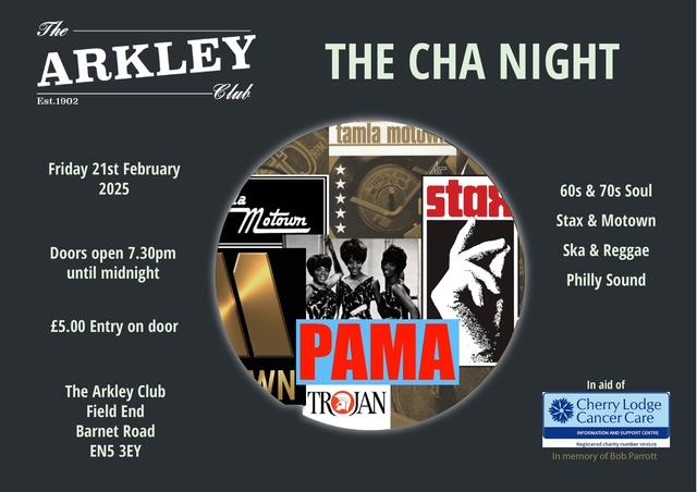The first Arkley Club Cha Night of 2025 will be on Friday 21st February, from 7.30pm until midnight