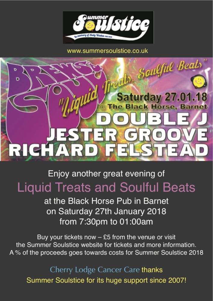 Brews & Soul returns for more liquid treats and soulful beats at the Black Horse, Barnet on Saturday 27th January 2018, from 7.30pm to 1am. Music will be provided by resident DJs Double J and Jester Groove plus special guest Richard Felstead.