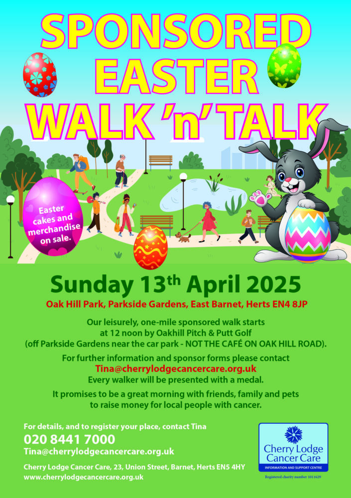 You are invited to show your support for Cherry Lodge Cancer Care by taking part in our Easter-tide sponsored Walk ‘n’ Talk.