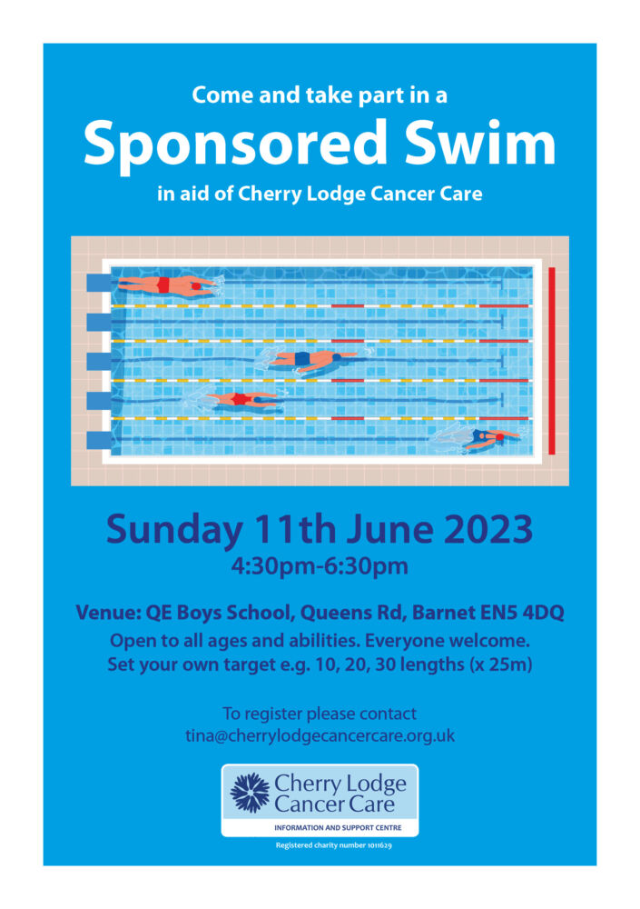 Cherry Lodge Cancer Care invites you to take part in a Sponsored Swim to help fund our much needed cancer information and support services.