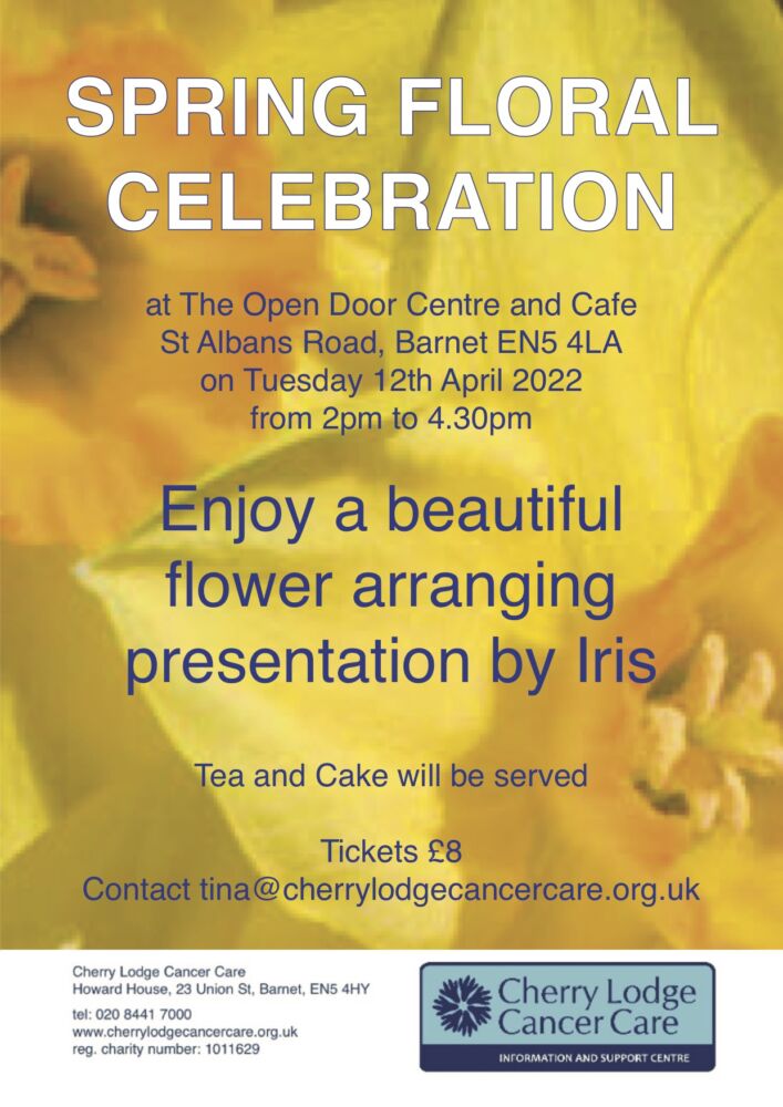 Join friends to celebrate Spring at the Open Door Centre and Cafe, St Albans Road, Barnet on Tuesday 12th April 2022 from 2pm to 4.30pm.