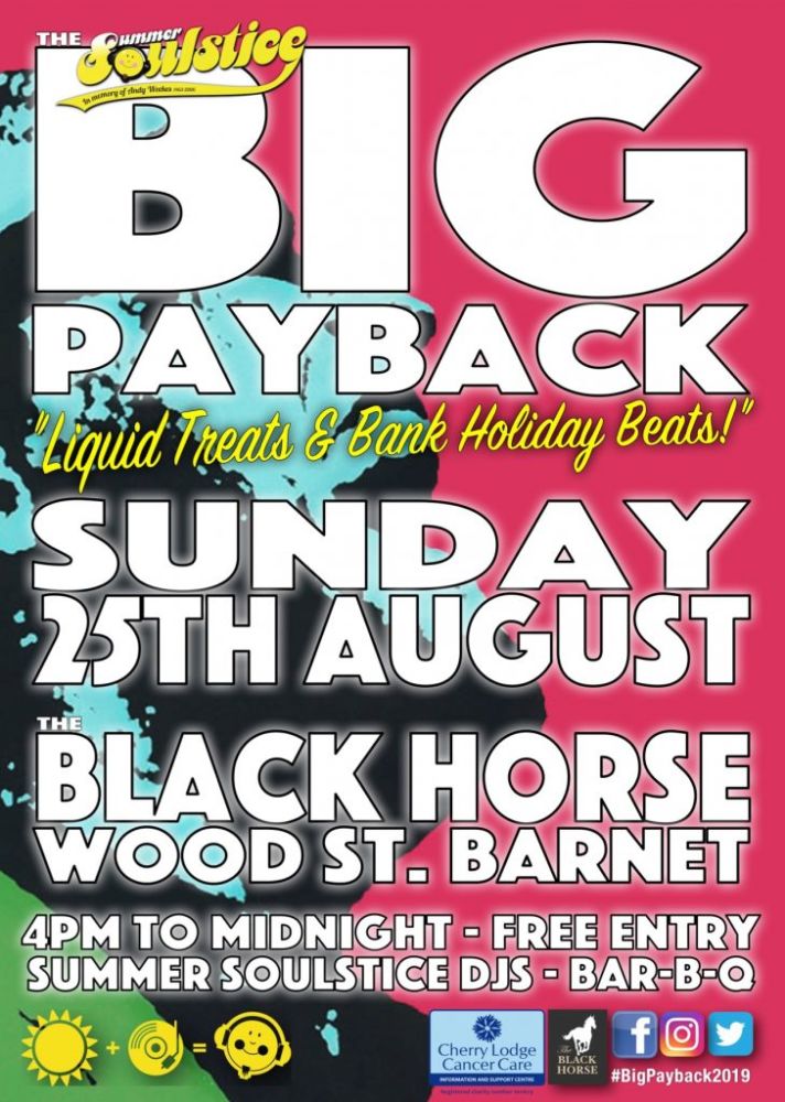 You are invited to join members of the Soulstice crew at the Black Horse pub, Barnet on Bank Holiday Sunday, 25th August 2019. Eight hours of soulful grooves, funky jams and holiday beats will be presented by DJs Ash Selector, Double J, Jester Groove, Mr Green, Matt C and Brian Mac. Also on offer will be a barbecue and a wide choice of great beers and wines.