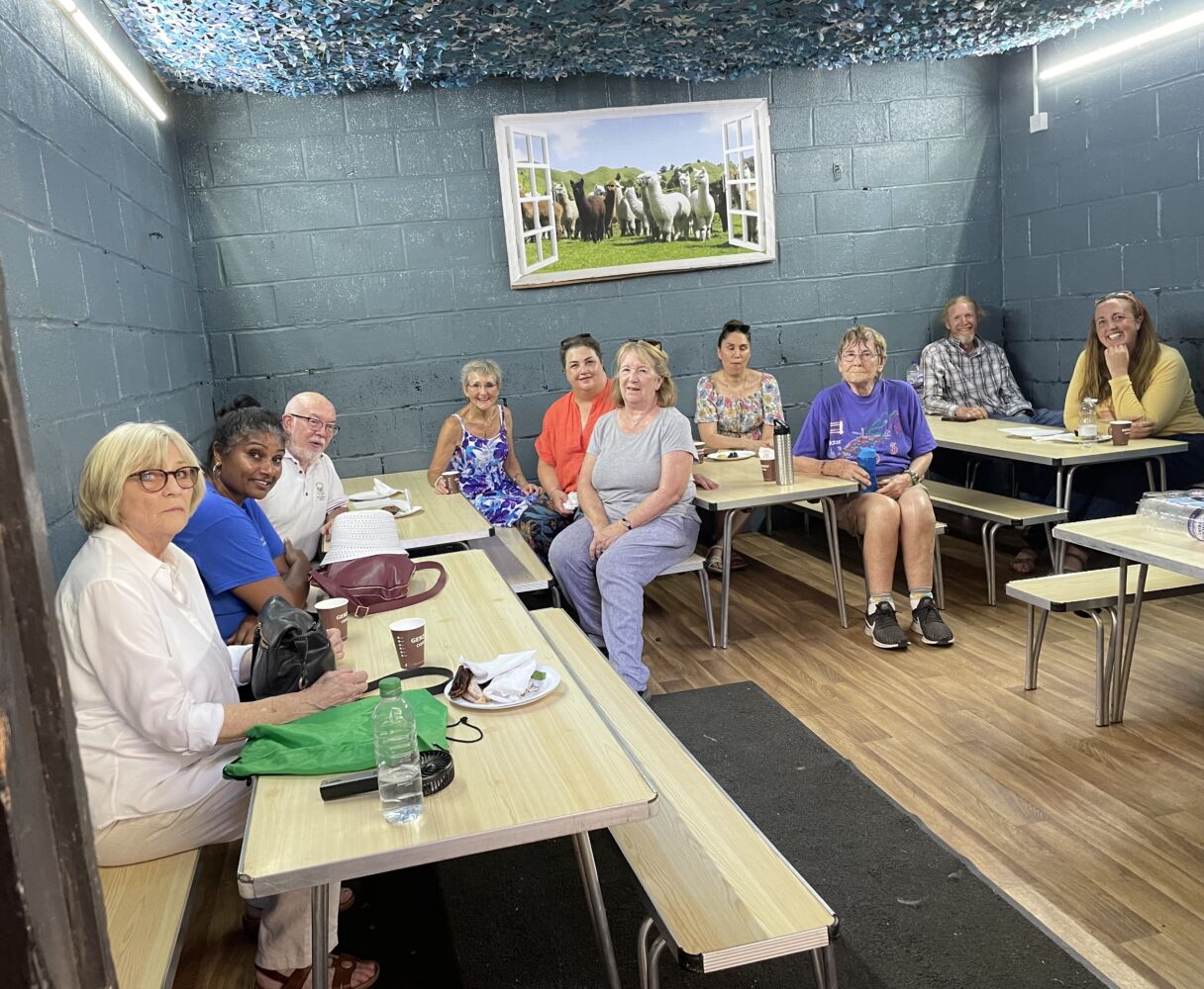 On Saturday 13th August 2022 – surely one of the hottest days of the year – a group from Cherry Lodge Cancer Care visited Pages Stud Farm, situated near Elstree aerodrome. Our party, made up of eight CL members, a member of staff, Margaret and a CL volunteer, was joined by Nathalie, the owner, and Barbara, an amazing farm volunteer. A most enjoyable guided tour and an opportunity to handle some of the animals were followed by delicious refreshments.