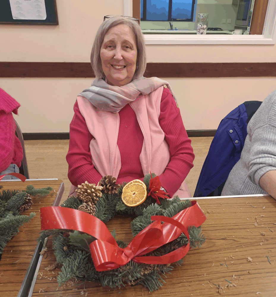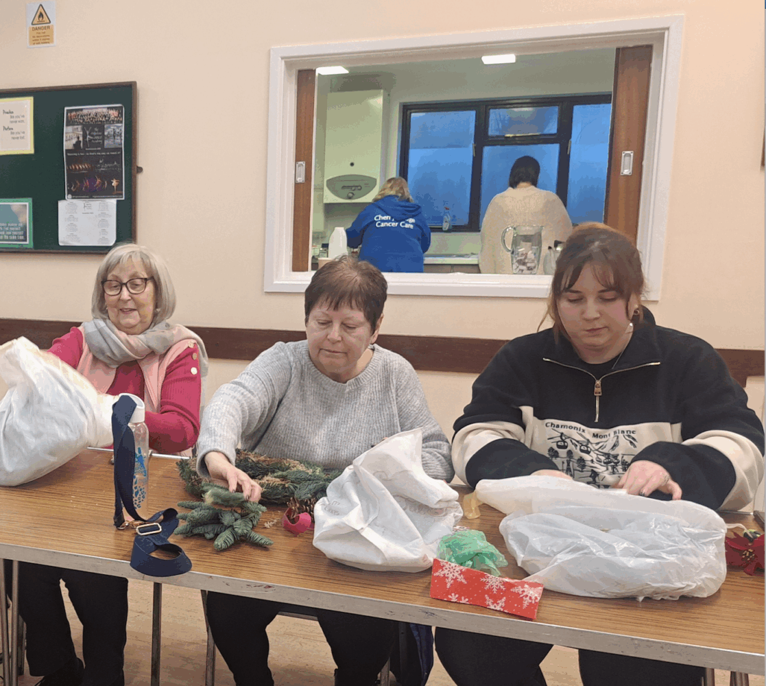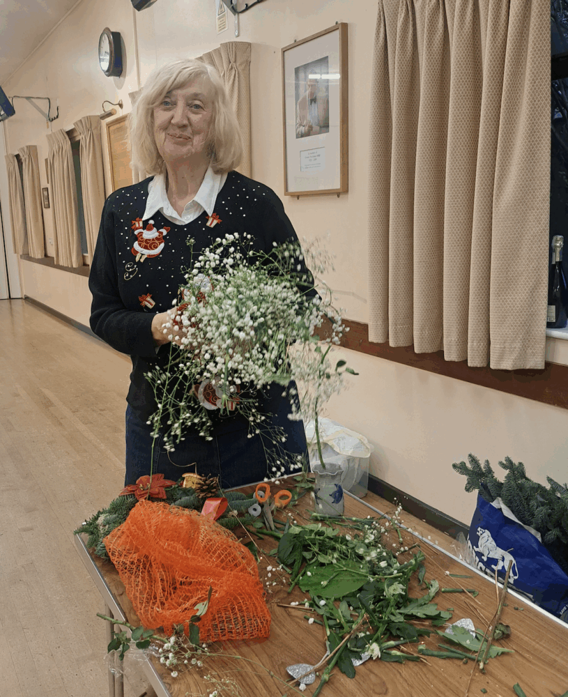 The Festive Wreath Making Workshop, held in aid of Cherry Lodge Cancer Care at Hadley Memorial Hall on Thursday 4th December 2025, was another sell-out success. Over the past several years, Iris’s regular seasonal flower arranging events have made her very popular among Cherry Lodge members and supporters. All 20 tickets were sold well ahead of the date.