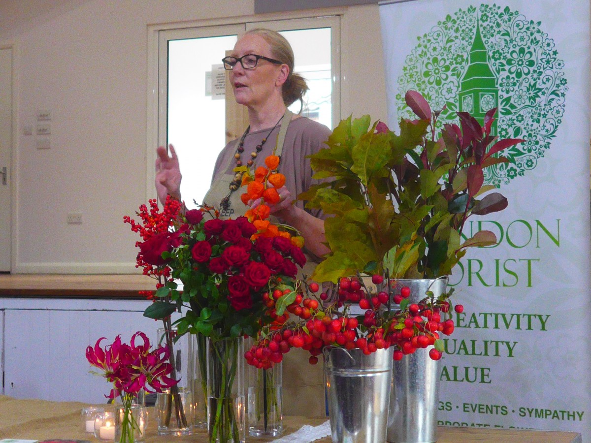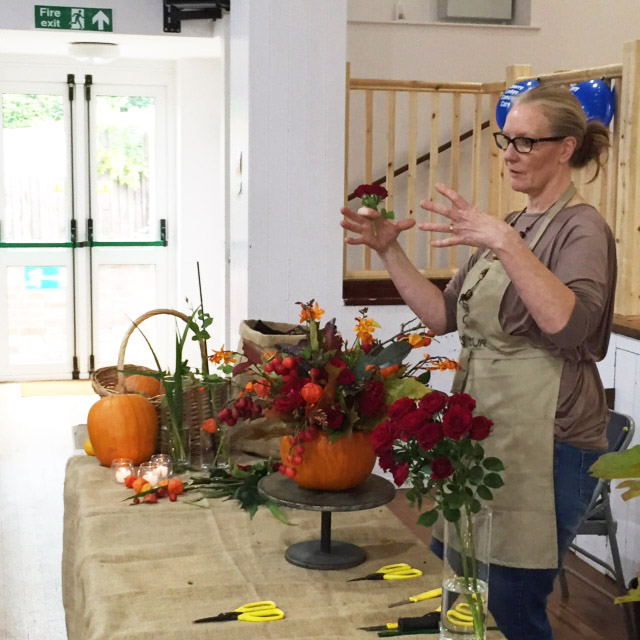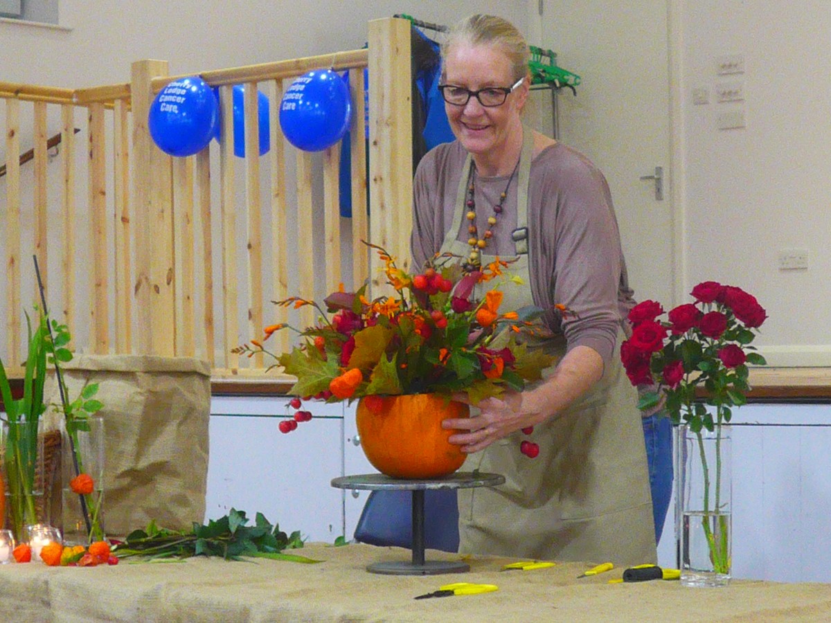 This excellent demonstration of seasonal flower arranging by Your London Florist of Southgate was the second ingredient of the very successful Autumn ‘Flowers and Food’ event held on Monday 19th October 2015 to raise funds for Cherry Lodge Cancer Care.
