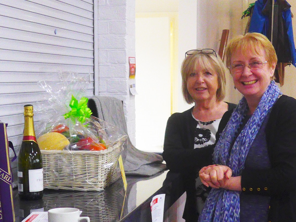 Once Karen’s display was completed, it was held up for all to see and the decision was made to offer it for auction to raise additional funds for Cherry Lodge. The winning bid, of £48, was made by Kathleen, who is shown with Migle and Karen in the penultimate photo, below. There was also a raffle with some tempting prizes.