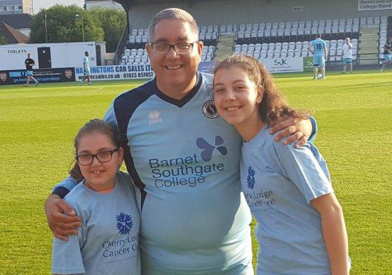 Cherry Lodge is benefiting once again from the proceeds of a football fixture between Herts XI and a team of Spurs Legends. Organised by John Murphy of Finchpalm, this popular annual sporting event took place on Friday 22nd July 2016 at Boreham Wood FC, with proceeds being shared by Cherry Lodge Cancer Care and Borehamwood Youth FC.