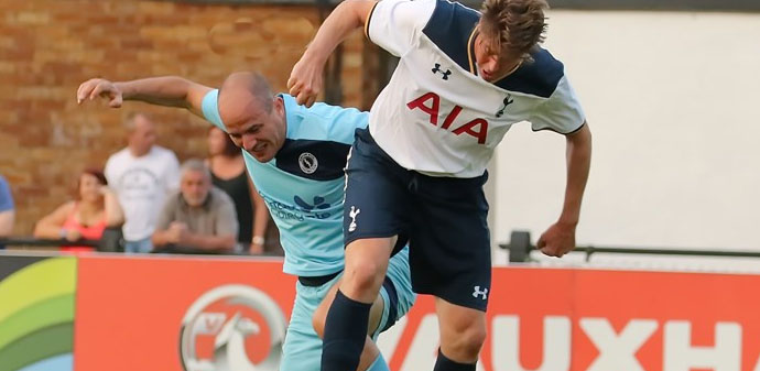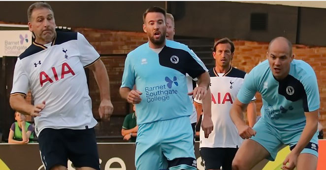 It was an enjoyable and exciting game, with the result in the balance to the very end. In the 90th minute, with the score at 2 apiece, Darren Anderton scored his second goal of the evening. Then, in extra time, Anderton completed his hat-trick to take the final score to 4-2 to Spurs Legends. A full report of the game can be seen on the Tottenham Hotspur website, together with photos by Martin Taylor (including photos 4 to 8 reproduced below). The other Legends’ goal was a penalty by Mark Gower. The Herts goals were scored by Dean Shuttleworth and Matt Tilbury.