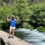During the first two days in Portugal we walked along the coast. The views of the sea and glorious sandy beaches were amazing. I quickly got used to following the yellow arrows and yellow scallop shell markers that help to guide you, and to sharing with other pilgrims the greeting ‘Bom Caminho’ (may your path be good) as you walked on. As we moved inland on day three, the scenery changed to beautiful lush fields, forests, ancient paths and bridges crossing beautiful rivers.