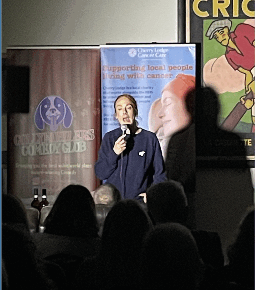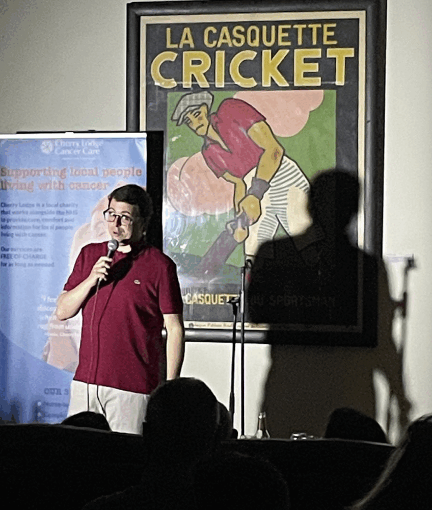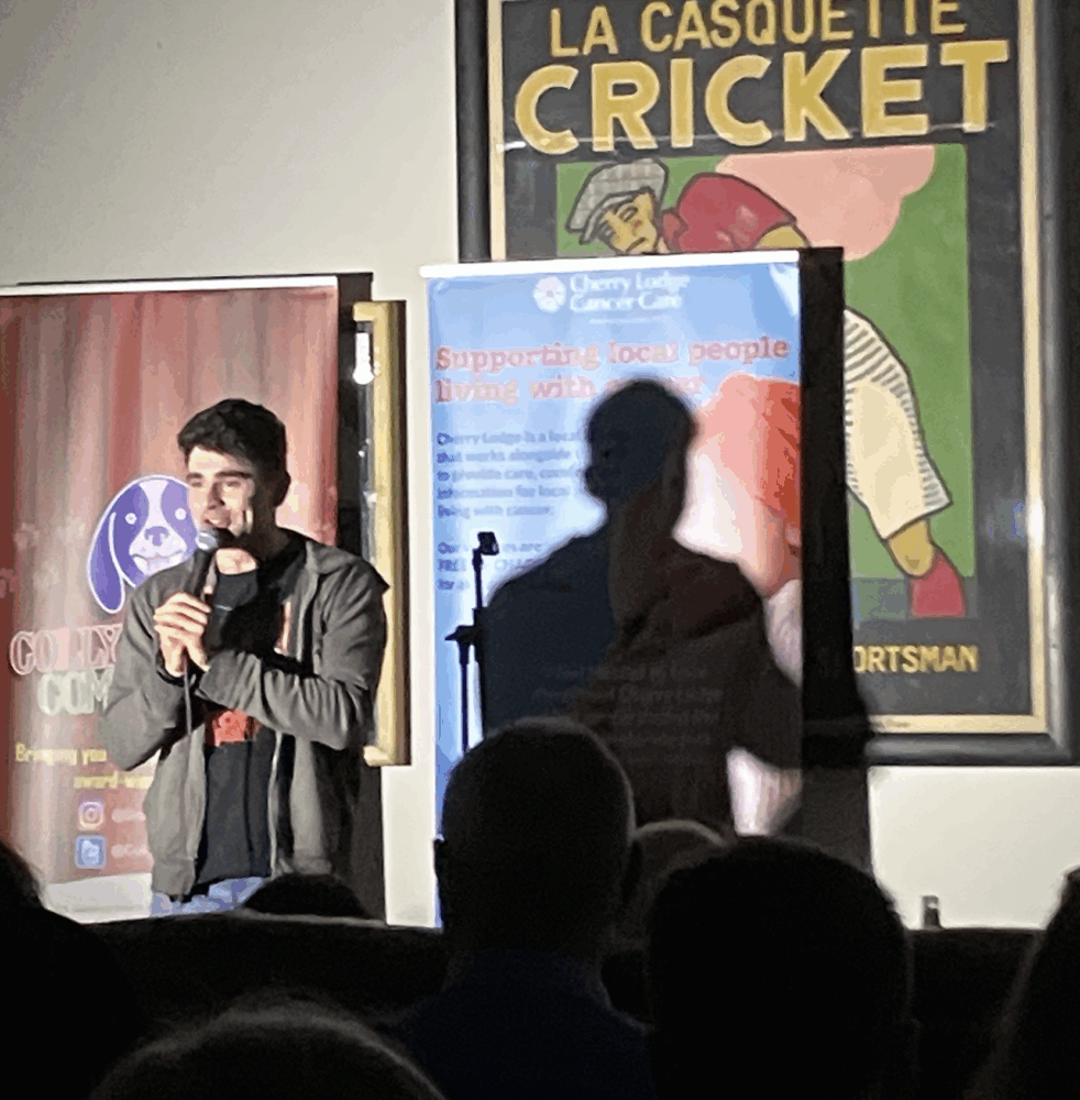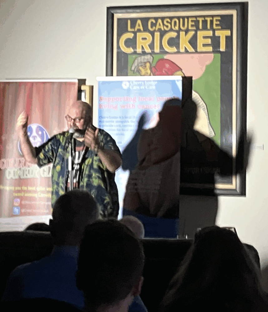 Supporters of Cherry Lodge Cancer Care returned to Totteridge Cricket Club on Saturday 18th April 2026 to enjoy top-class comedy acts while raising much needed money to help fund CL’s many services for local people affected by cancer. This was a very welcome opportunity to ‘Laugh out Loud’ in challenging times – and all tickets were sold well ahead of the event.
