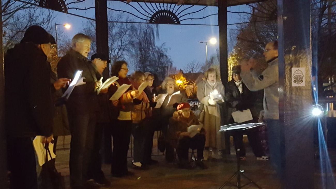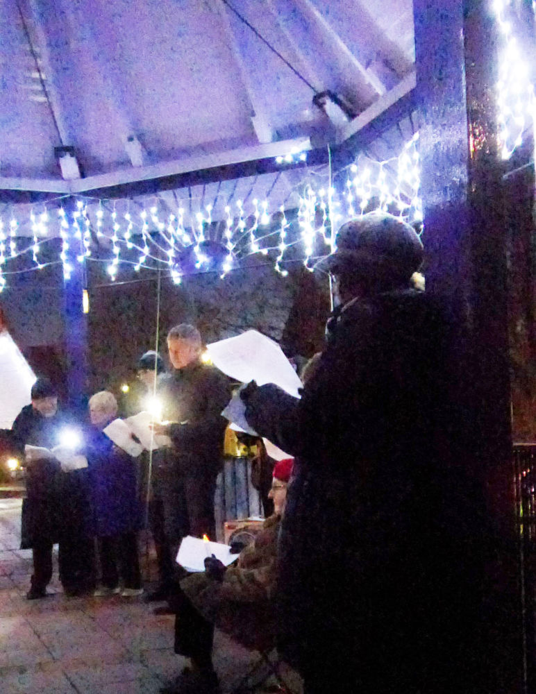 The ceremony was led this year by Sarah, Vice Chair of the Cherry Lodge trustee board as Margaret, our Chairman who usually takes this role, was sadly unable to attend due to a troublesome infection. The Cherry Lodge Singing Group was in good voice under the leadership of Simon Wilsher, readings were given by Yvonne (a member of staff), Dilly, and Ruth (a trustee). Two volunteers, Freddy and Sue, then read out the list of those chosen for special remembrance and for whom, through the giving of donations, a symbolic light was lit on the bandstand.