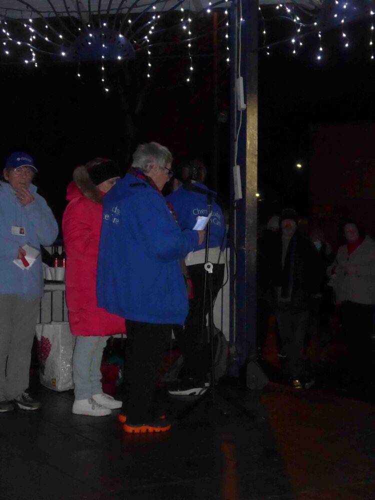 Cherry Lodge Cancer Care’s annual Lights of Love ceremony was, thankfully, back at the bandstand at Barnet’s The Spires on Sunday 12th December 2021. Last year’s Zoom event was greatly appreciated in the circumstances, but this year’s chance to attend again in person was particularly special. More than 90 people attended on what was a slightly damp but fairly mild evening.