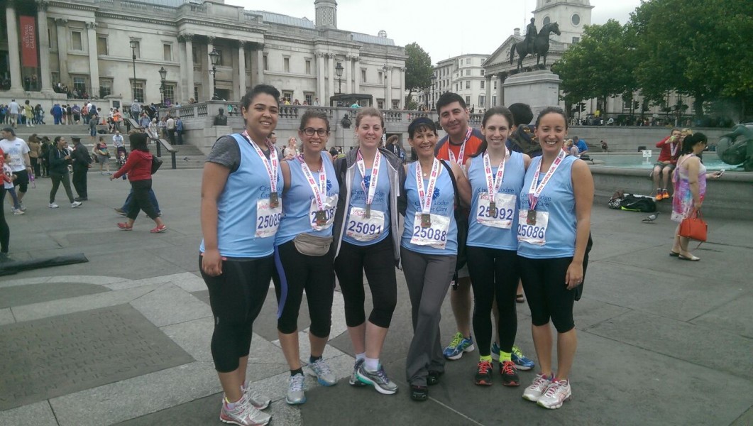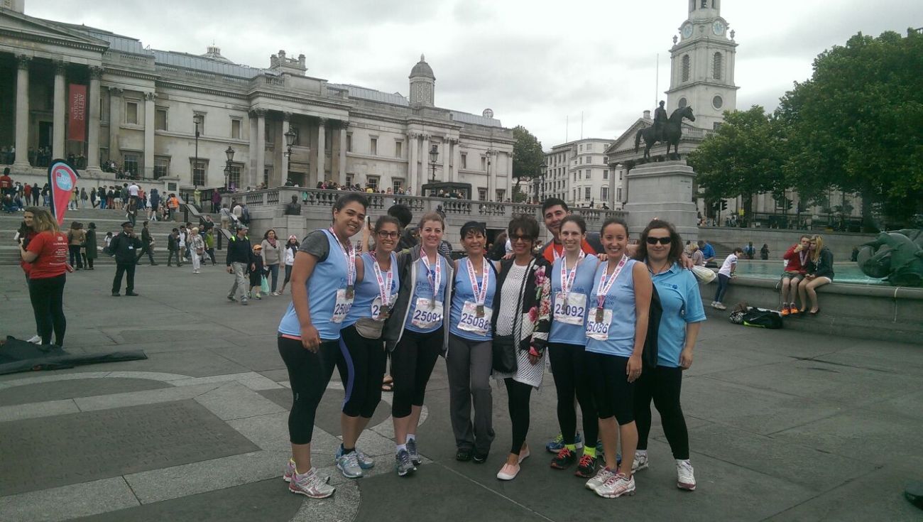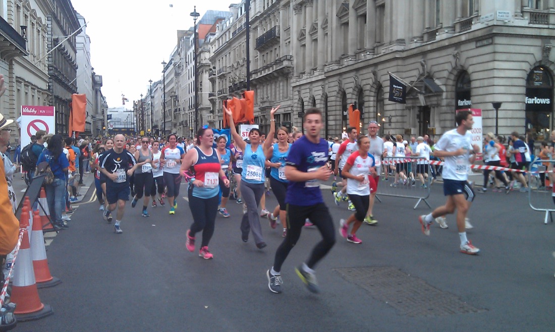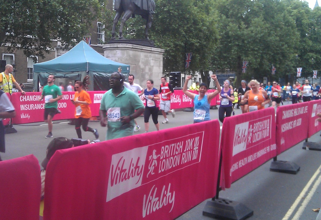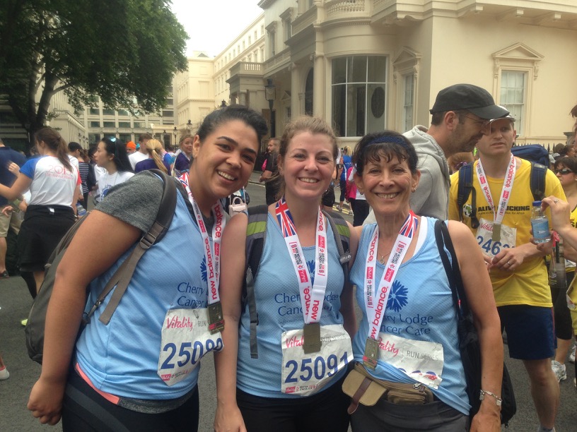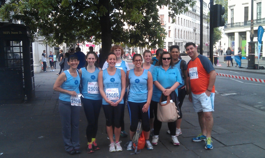 Cherry Lodge sends a big thank you to our largest ever team of 16 runners who ran for us in the 2015 Vitality British 10k London Run on Sunday 12th July. Sadly, on the day, two of the 18 people who had signed up were unable to take part, but we thank them nonetheless. This is a wonderful fun event when many thousands of people run through the streets of London, past some of the capital’s most iconic sites, to raise money for their chosen charities.