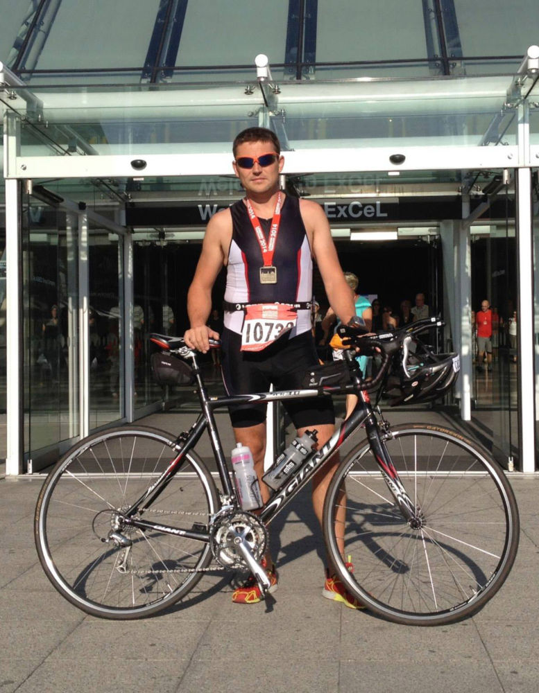 All our triathletes competed on day two. Alexei Zverovitch, James Eastwood and Tristan Phillips all raced over the Olympic distance, comprising a 1.5k swim in the historic dock, a 40k bike ride on closed roads around the sights of London, and ending with a 10k run. Joe Wilson, a cycling enthusiast, took part in the even more demanding Olympic Plus event, with swimming and running distances the same as for the Olympic event but with a second-stage 80k bike ride