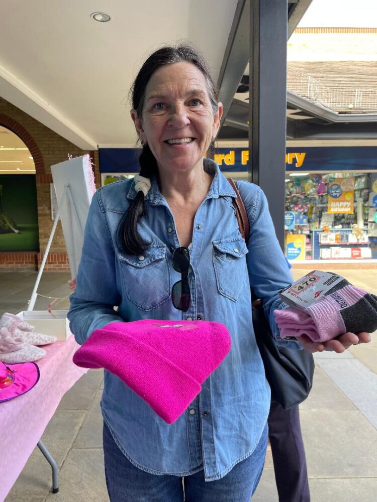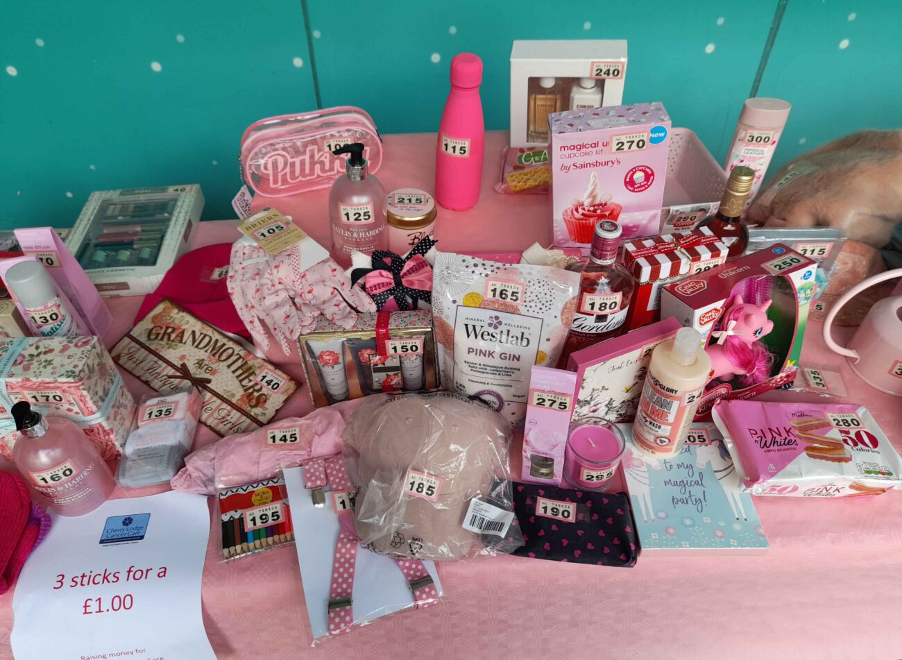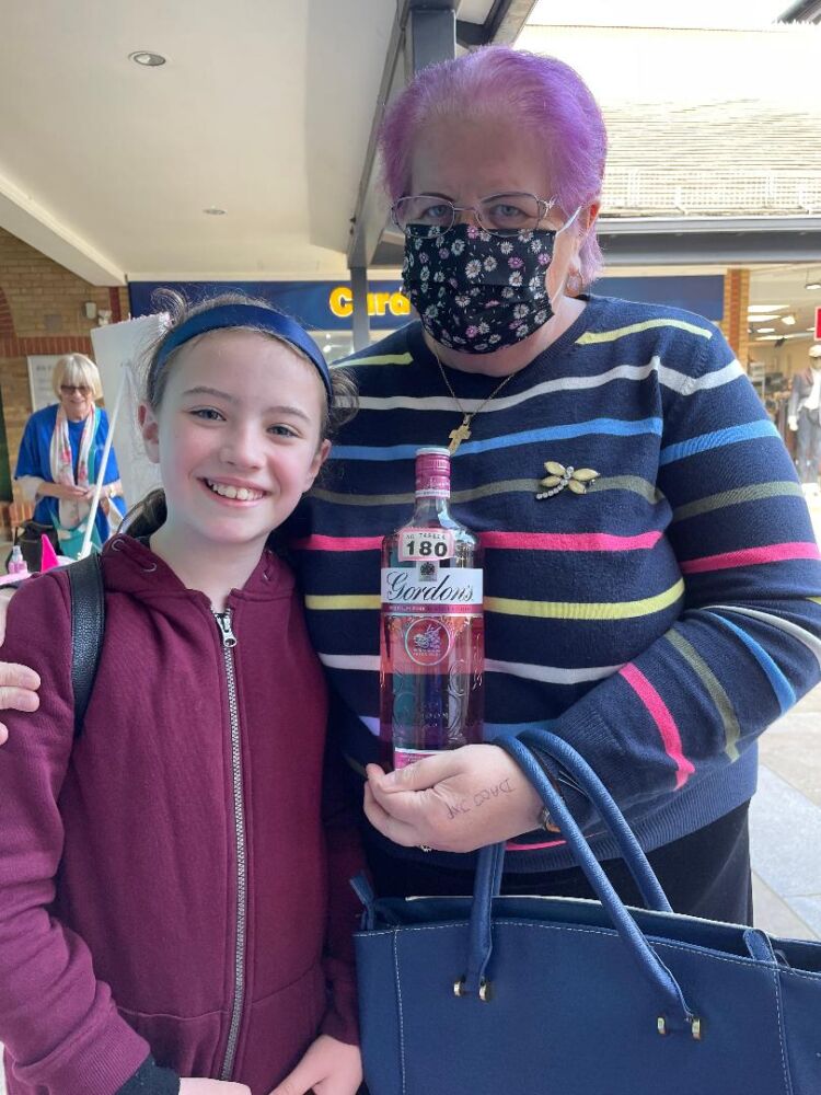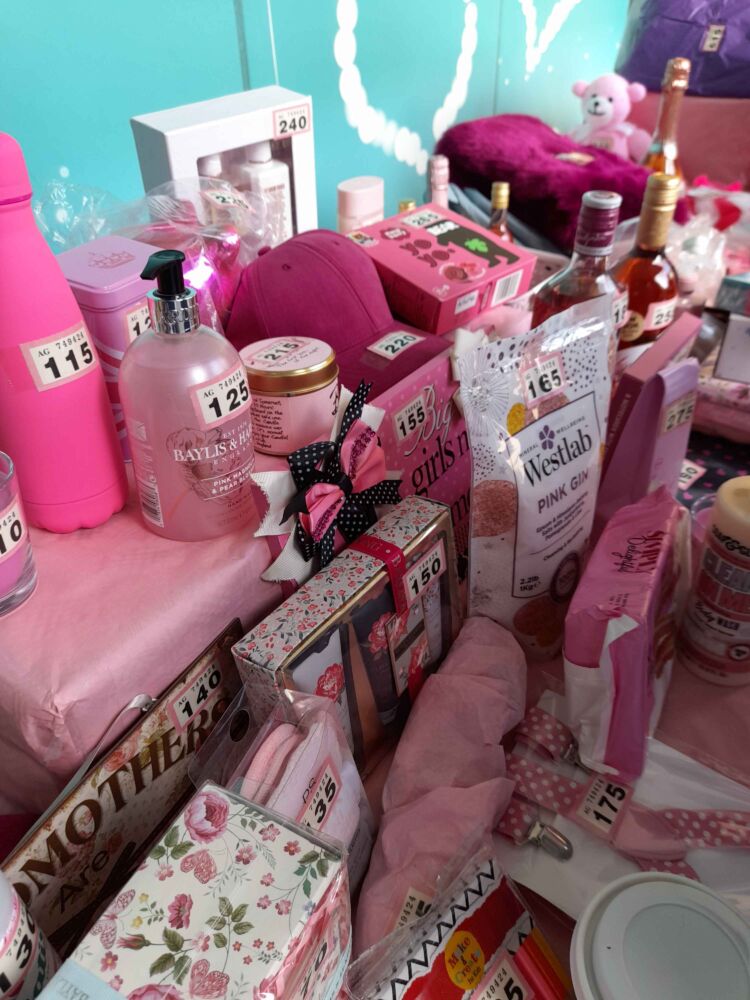 The stall was packed with hundreds of lovely pink prizes and a great many people tried their luck over a period of several hours. Among the pink soaps and little bags, scarves, hats, gloves, and lots of bottles, there was one bottle of pink gin, which, it has to be said, attracted many. This much coveted prize was first won by a young girl – but as she was with her grandmother the latter kindly offered to take the gin while the girl won another prize more to her liking!
