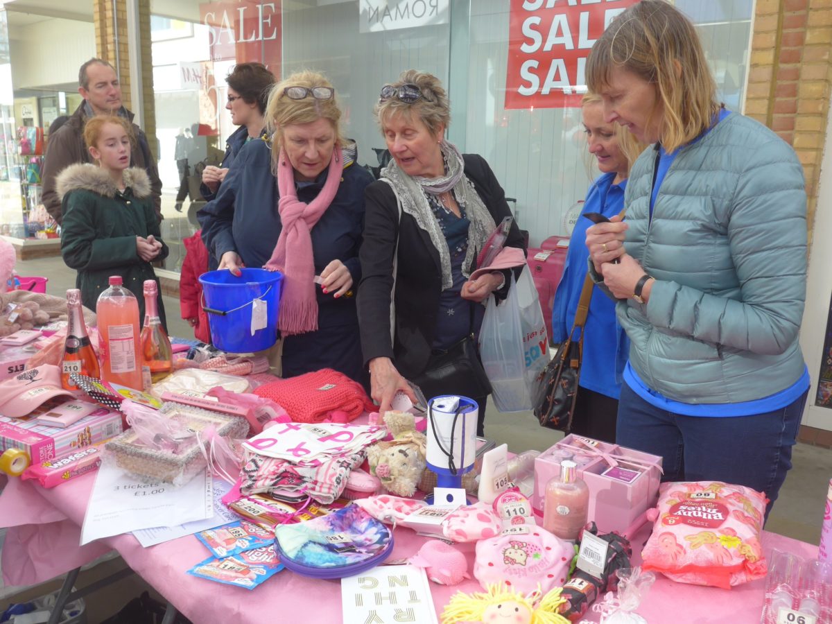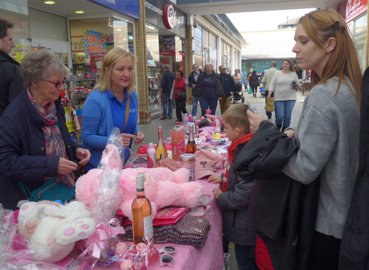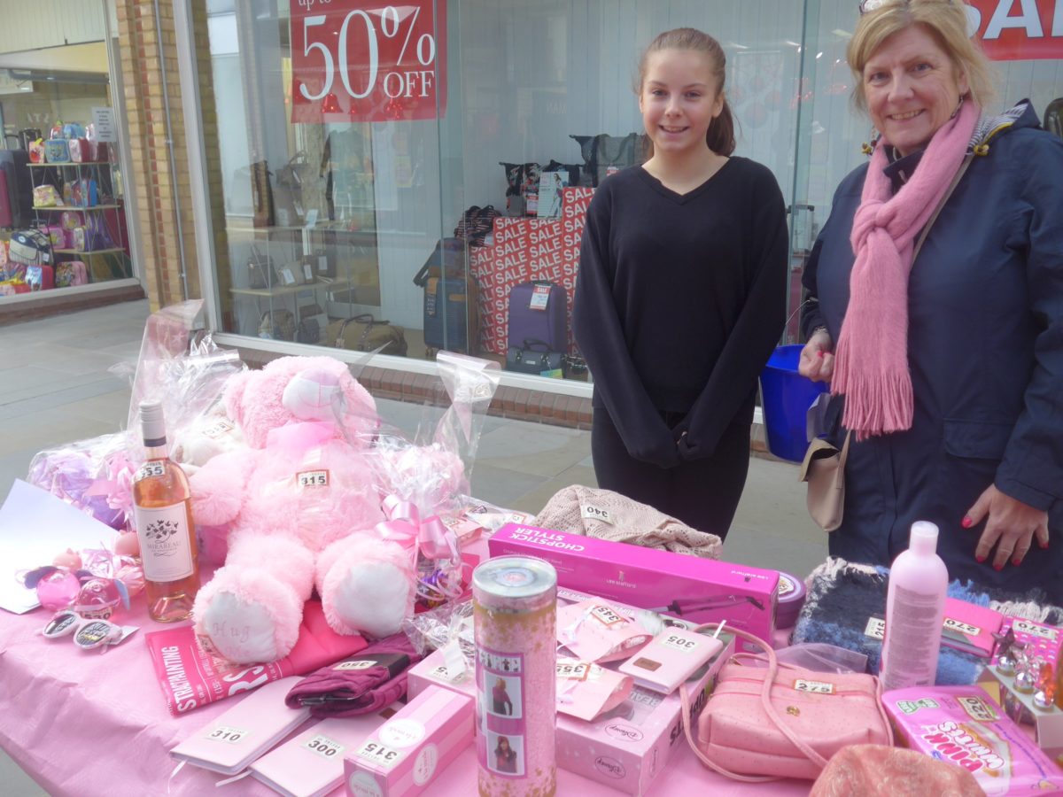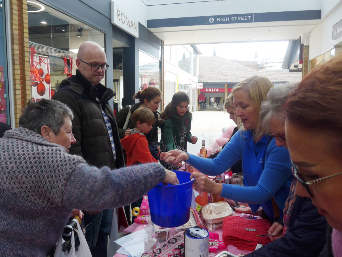 On 21st October 2017, Cherry Lodge Cancer Care once again put up its Pink Barrow Tombola stall in The Spires Shopping Centre in Barnet. The purpose was not only to draw attention to national Breast Cancer Awareness Month but also to raise funds for the charity. The stall was decorated with pink banqueting roll and the prizes ranged from pink lemonade and champagne to pink cuddly toys and next year’s diaries.