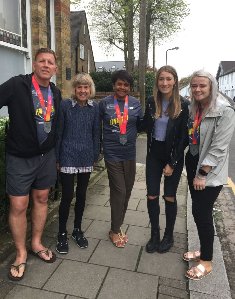 The, by now, almost statutory, post-marathon massage evening, small welcome event and photoshoot for Cherry Lodge London Marathon runners took place on Monday 23rd April at Howard House. All this year’s runners apart from Dominic were able to attend. Many thanks to the three therapists – Andi, Loretta and Prasanna – who gave their services to the still aching runners.
